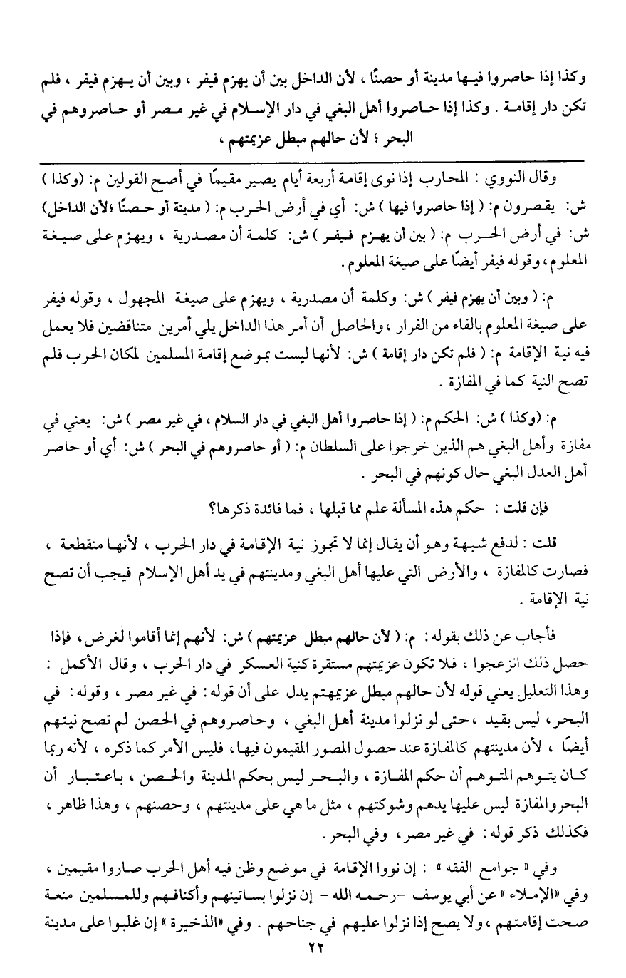 وكذا إذا حاصروا فيها مدينة أو حصنًا، لأن الداخل بين أن يهزم فيفر، وبين أن يهزم فيفر، فلم تكن دار إقامة. وكذا إذا حاصروا أهل البغي في دار الإسلام في غير مصر أو حاصروهم في البحر؛ لأن حالهم مبطل عزيمتهم