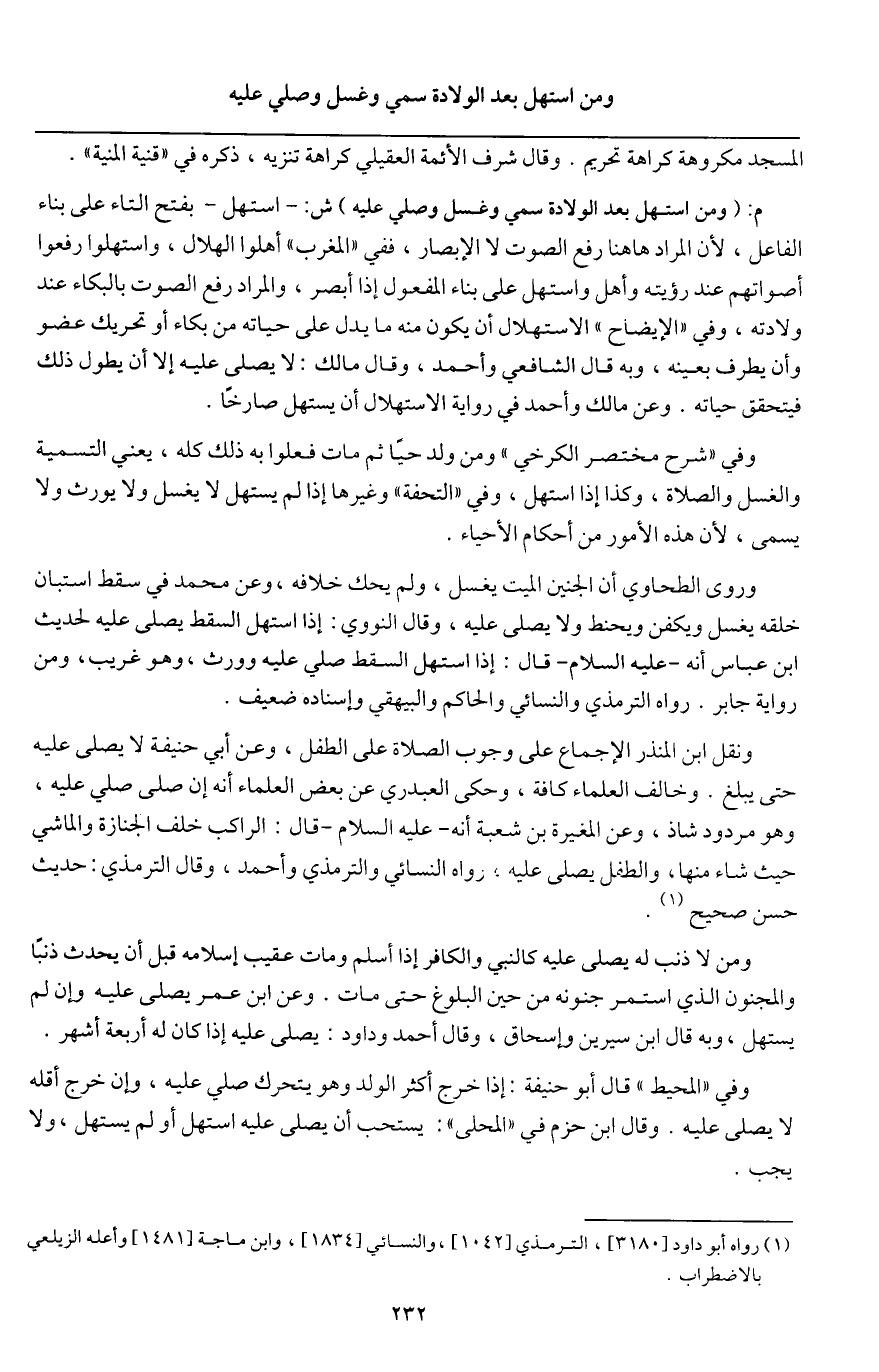 ومن استهل بعد الولادة سمي وغسل وصلي عليه