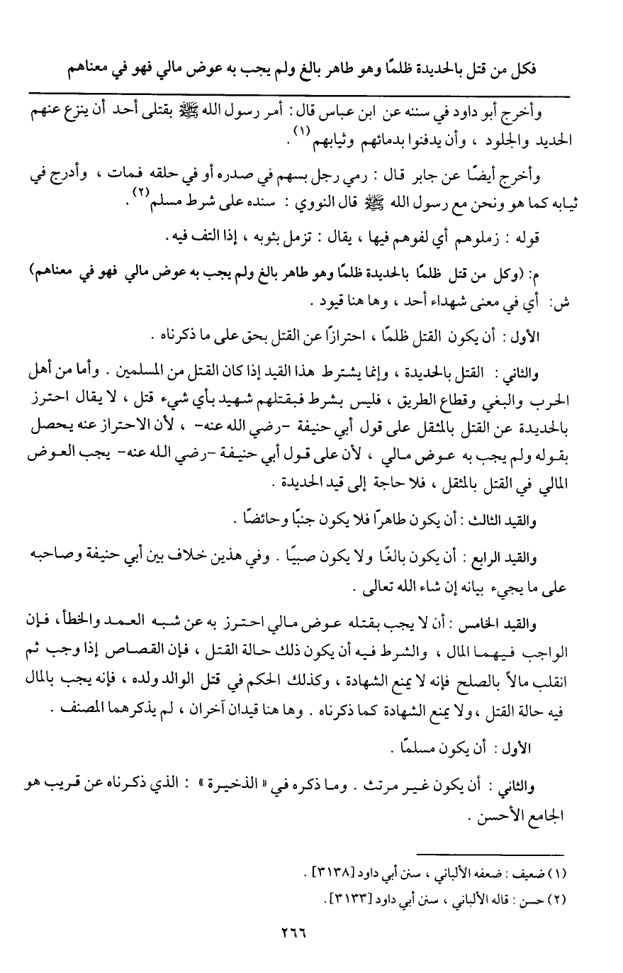 فكل من قتل بالحديدة ظلما وهو طاهر بالغ ولم يجب به عوض مالي فهو في معناهم
