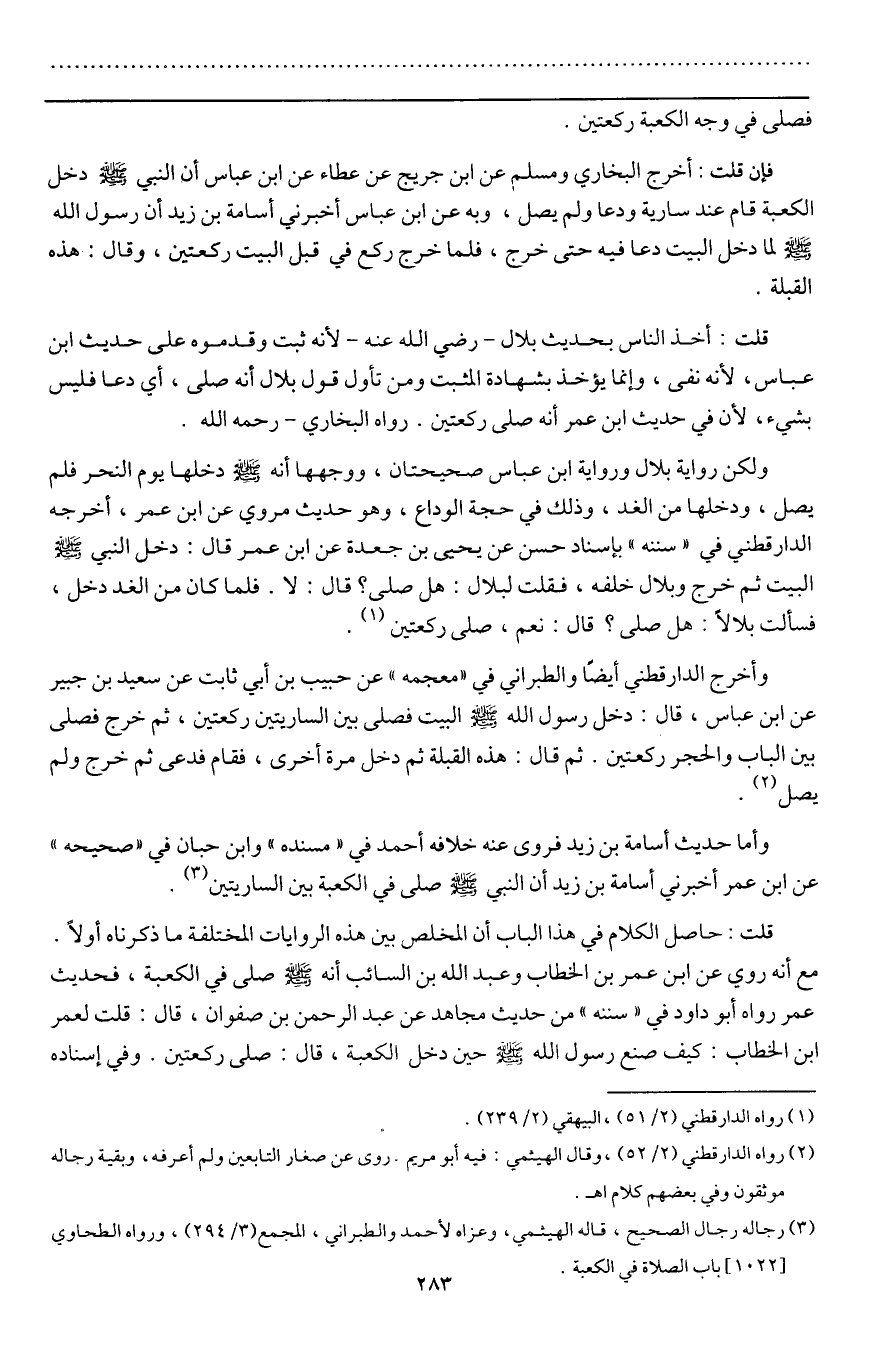 ـــــــــــــــــــــــــــــQفصلى في وجه الكعبة ركعتين» .