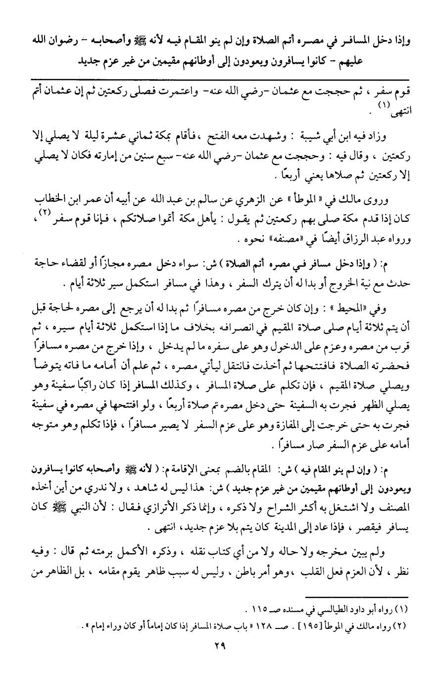 ـــــــــــــــــــــــــــــQقوم سفر، ثم حججت مع عثمان - رَضِيَ اللَّهُ عَنْهُ - واعتمرت فصلى ركعتين ثم إن عثمان أتم انتهى.