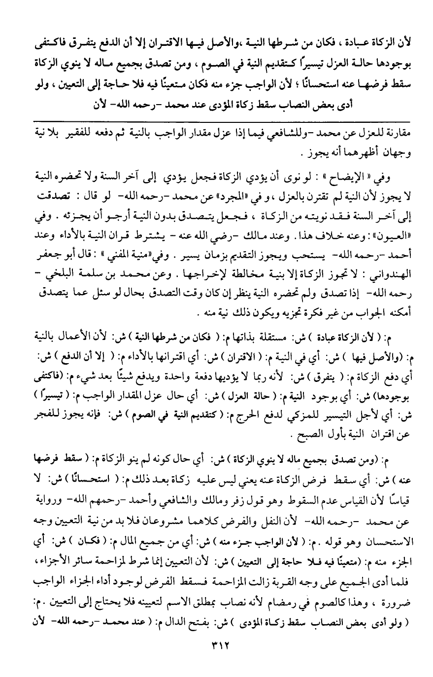 ـــــــــــــــــــــــــــــQمقارنة للعزل عن محمد - وللشافعي فيما إذا عزل مقدار الواجب بالنية ثم دفعه للفقير بلا نية وجهان أظهرهما أنه يجوز.