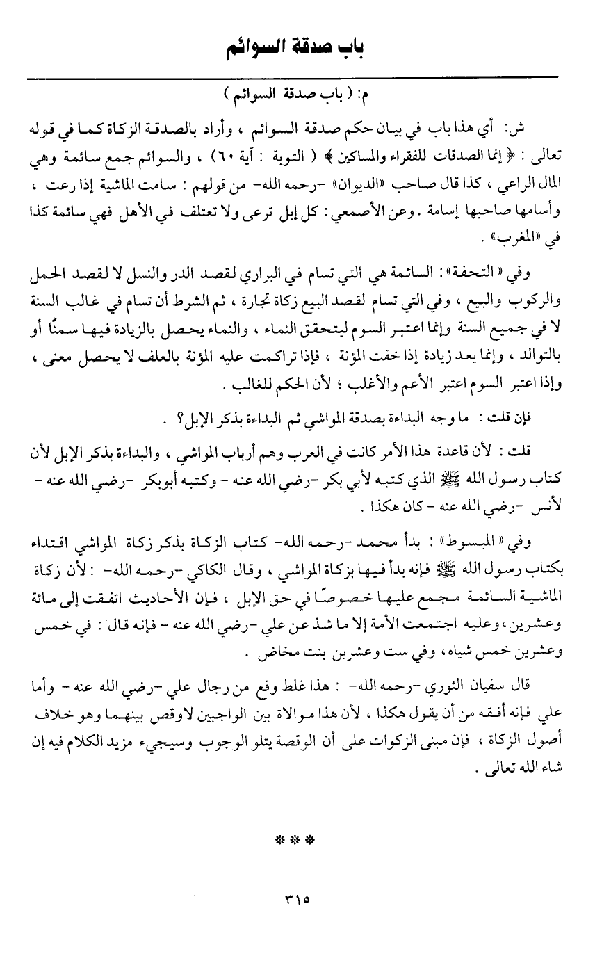 ـــــــــــــــــــــــــــــQ [باب صدقة السوائم] [حكم صدقة السوائم]