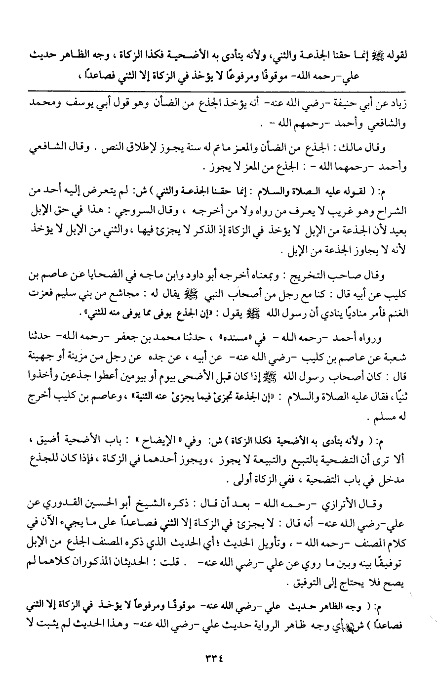 ـــــــــــــــــــــــــــــQزياد عن أبي حنيفة - رَضِيَ اللَّهُ عَنْهُ - أنه يؤخذ الجذع من الضأن وهو قول أبي يوسف ومحمد والشافعي وأحمد - رَحِمَهُمُ اللَّهُ -.