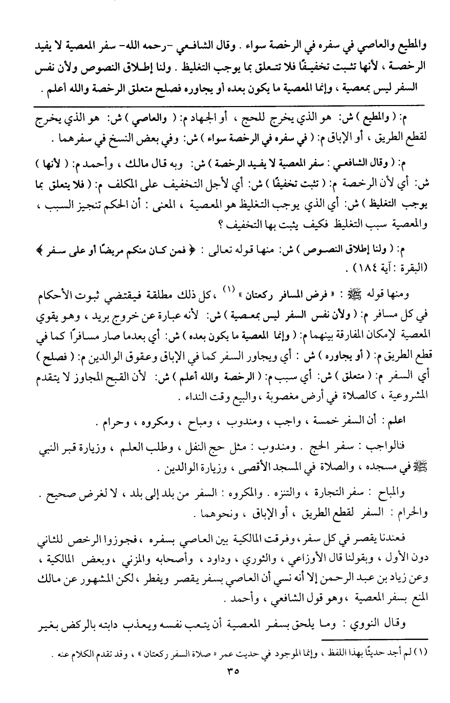 اعلم: أن السفر خمسة: واجب، ومندوب، ومباح، ومكروه، وحرام.