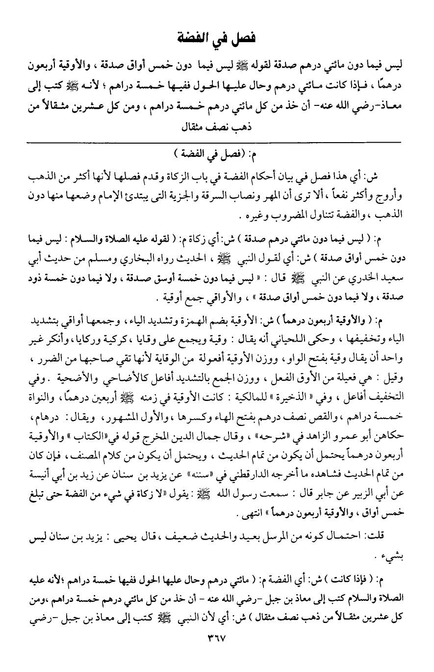 فصل في الفضة ليس فيما دون مائتي درهم صدقة لقوله - صَلَّى اللَّهُ عَلَيْهِ وَسَلَّمَ - «ليس فيما دون خمس أواق صدقة» والأوقية: أربعون درهما،
