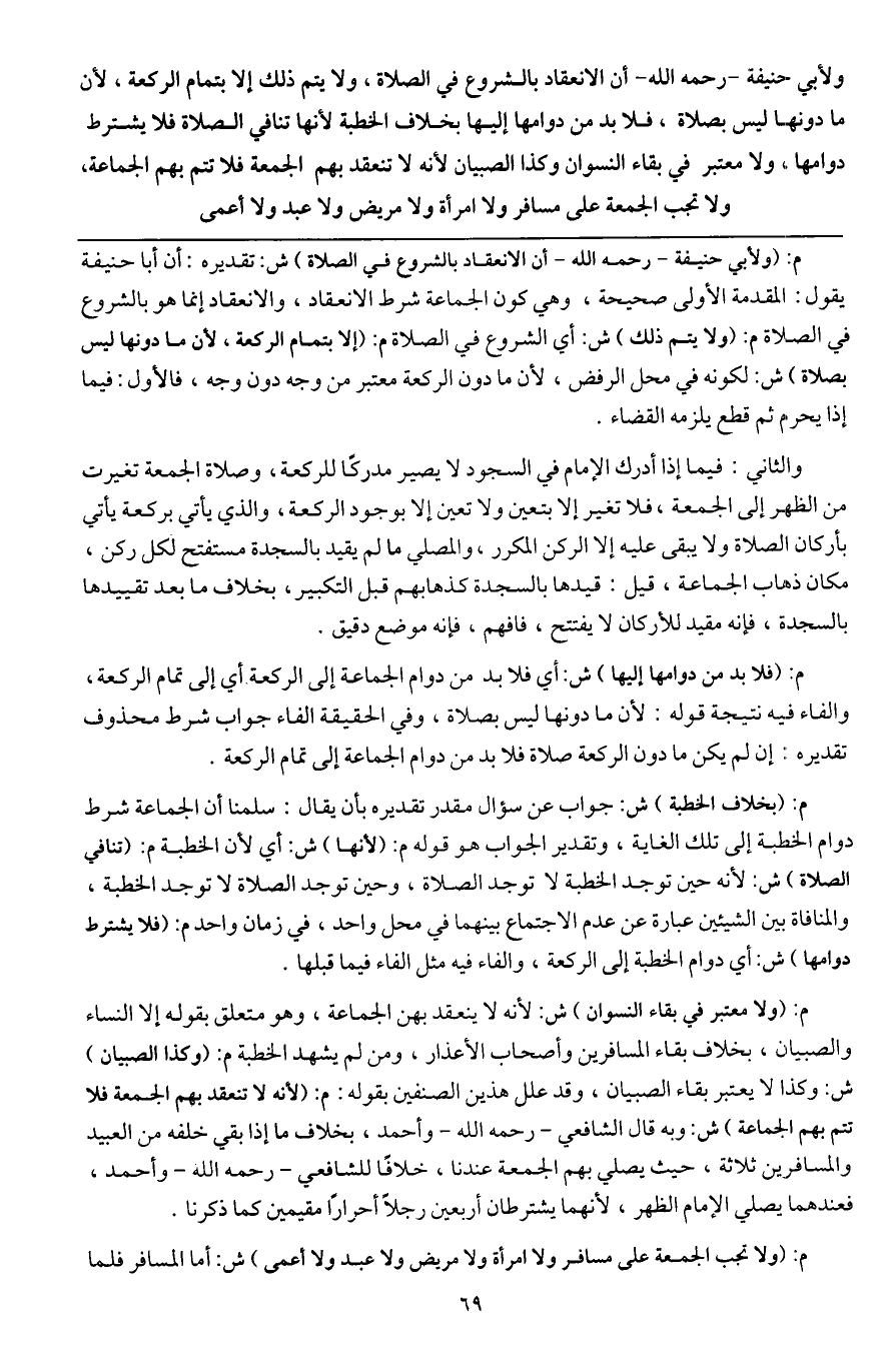 ولا تجب الجمعة على مسافر ولا امرأة ولا مريض ولا عبد ولا أعمى.