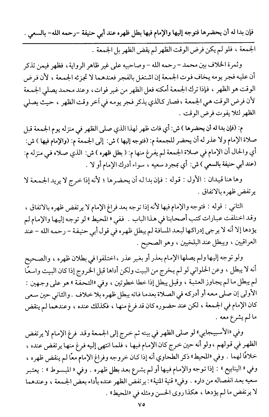 وفي " الأسبيجابي ": لو صلى الظهر في بيته ثم خرج إلى الجمعة وقد فرغ الإمام لا يرتفض الظهر في قولهم، ولو أنه حين خرج كان الإمام فيها، فلما انتهى إليه فرغ منها يرتفض عنده، خلافا لهما. وفي " المحيط " ذكر الطحاوي أنه إذا كان خروجه وفراغ الإمام معا لم ينقض ظهره، وفي " الينابيع": إذا توجه والإمام فيها أو لم يشرع بعد بطل ظهره. وفي " المبسوط ": يعتبر سعيه بعد انفصاله من داره. وفي " قنية المنية ": يرتفض الظهر عنده بأداء بعض الجمعة، وعندهما لا يرتفض ما لم يؤدها، هكذا روى الحسن، ومثله في " المحيط".