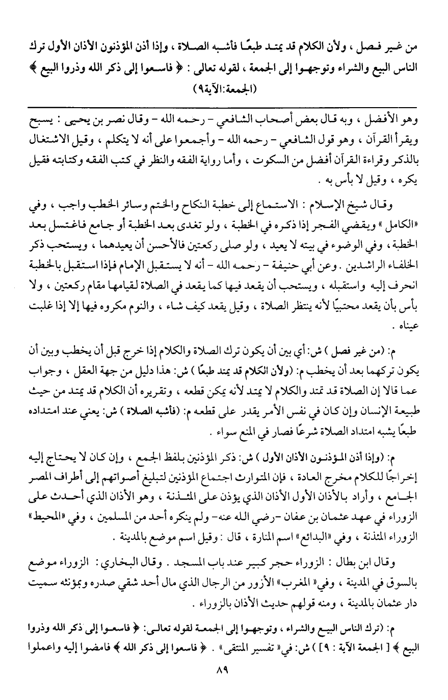 م: (ترك الناس البيع والشراء، وتوجهوا إلى الجمعة لِقَوْلِهِ تَعَالَى: {فَاسْعَوْا إِلَى ذِكْرِ اللَّهِ وَذَرُوا الْبَيْعَ} [الجمعة: 9] [الجمعة الآية: 9] ) ش: في " تفسير المنتقى ". {فَاسْعَوْا إِلَى ذِكْرِ اللَّهِ} [الجمعة: 9] فامضوا إليه واعملوا