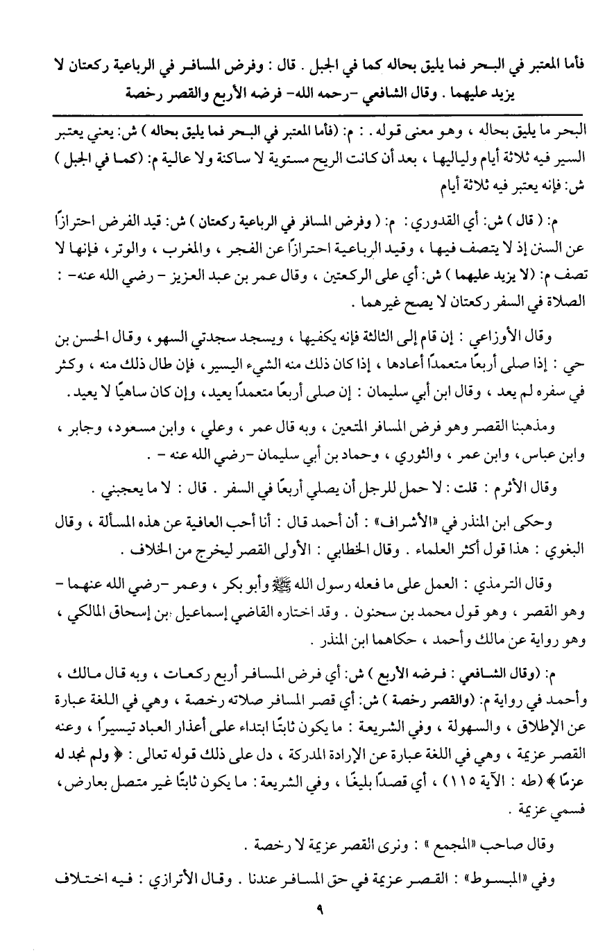 ومذهبنا القصر وهو فرض المسافر المتعين، وبه قال عمر، وعلي، وابن مسعود، وجابر، وابن عباس، وابن عمر، والثوري، وحماد بن أبي سليمان - رَضِيَ اللَّهُ عَنْهُ -.