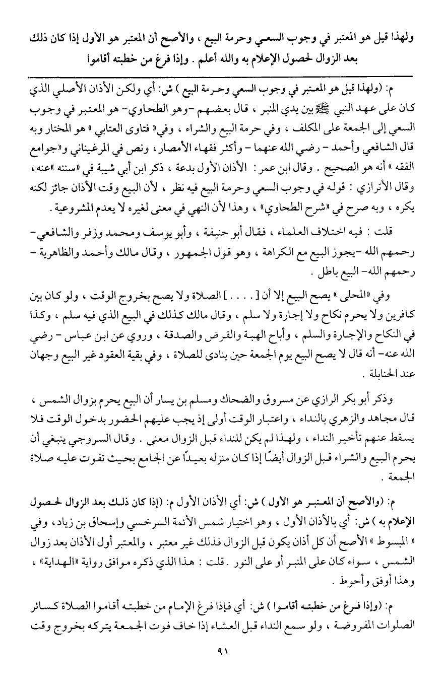 ـــــــــــــــــــــــــــــQم: (ولهذا قيل: هو المعتبر في وجوب السعي وحرمة البيع) ش: أي ولكن الأذان الأصلي الذي كان على عهد النبي - صَلَّى اللَّهُ عَلَيْهِ وَسَلَّمَ - بين يدي المنبر، قال بعضهم - وهو الطحاوي - هو المعتبر في وجوب السعي إلى الجمعة على المكلف، وفي حرمة البيع والشراء، وفي " فتاوى العتابي " هو المختار، وبه قال الشافعي وأحمد - رَضِيَ اللَّهُ عَنْهُمَا - وأكثر فقهاء الأمصار، ونص في المرغيناني و" جوامع الفقه " أنه هو الصحيح.