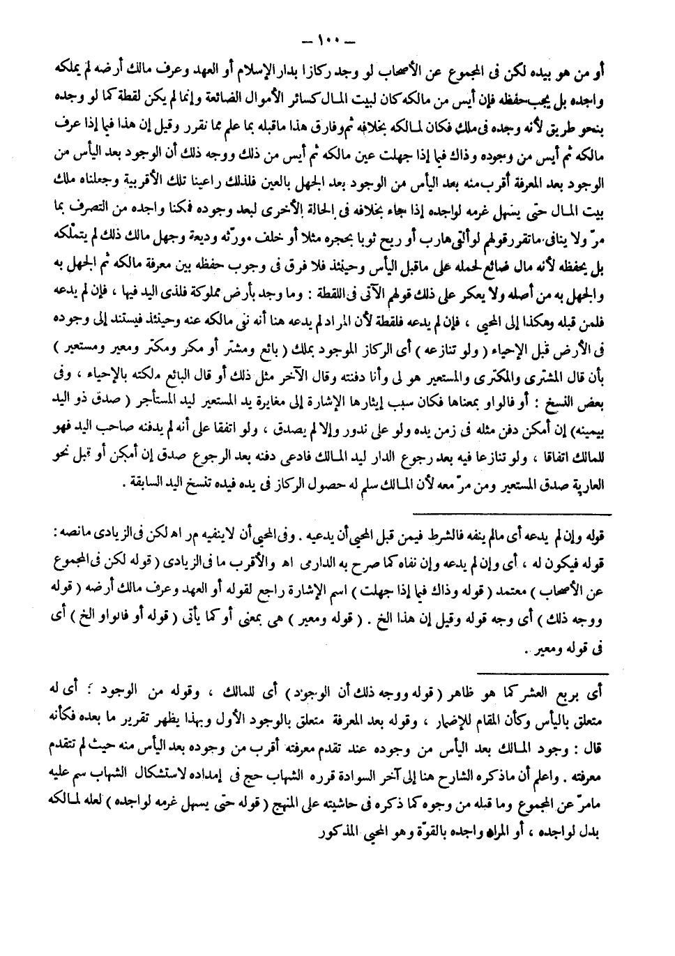 ـــــــــــــــــــــــــــــQأَيْ بِرُبُعِ الْعُشْرِ كَمَا هُوَ ظَاهِرٌ (قَوْلُهُ وَوَجْهُ ذَلِكَ أَنَّ الْوُجُودَ) أَيْ لِلْمَالِكِ، وَقَوْلُهُ مِنْ الْوُجُودِ أَيْ لَهُ مُتَعَلَّقٌ بِالْيَأْسِ وَكَأَنَّ الْمَقَامَ لِلْإِضْمَارِ، وَقَوْلُهُ بَعْدَ الْمَعْرِفَةِ مُتَعَلِّقٌ بِالْوُجُودِ الْأَوَّلِ وَبِهَذَا يَظْهَرُ تَقْرِيرُ مَا بَعْدَهُ فَكَأَنَّهُ قَالَ: وُجُودُ الْمَالِكِ بَعْدَ الْيَأْسِ مِنْ وُجُودِهِ عِنْدَ تَقَدُّمِ مَعْرِفَتِهِ أَقْرَبُ مِنْ وُجُودِهِ بَعْدَ الْيَأْسِ مِنْهُ حَيْثُ لَمْ تَتَقَدَّمْ مَعْرِفَتُهُ.