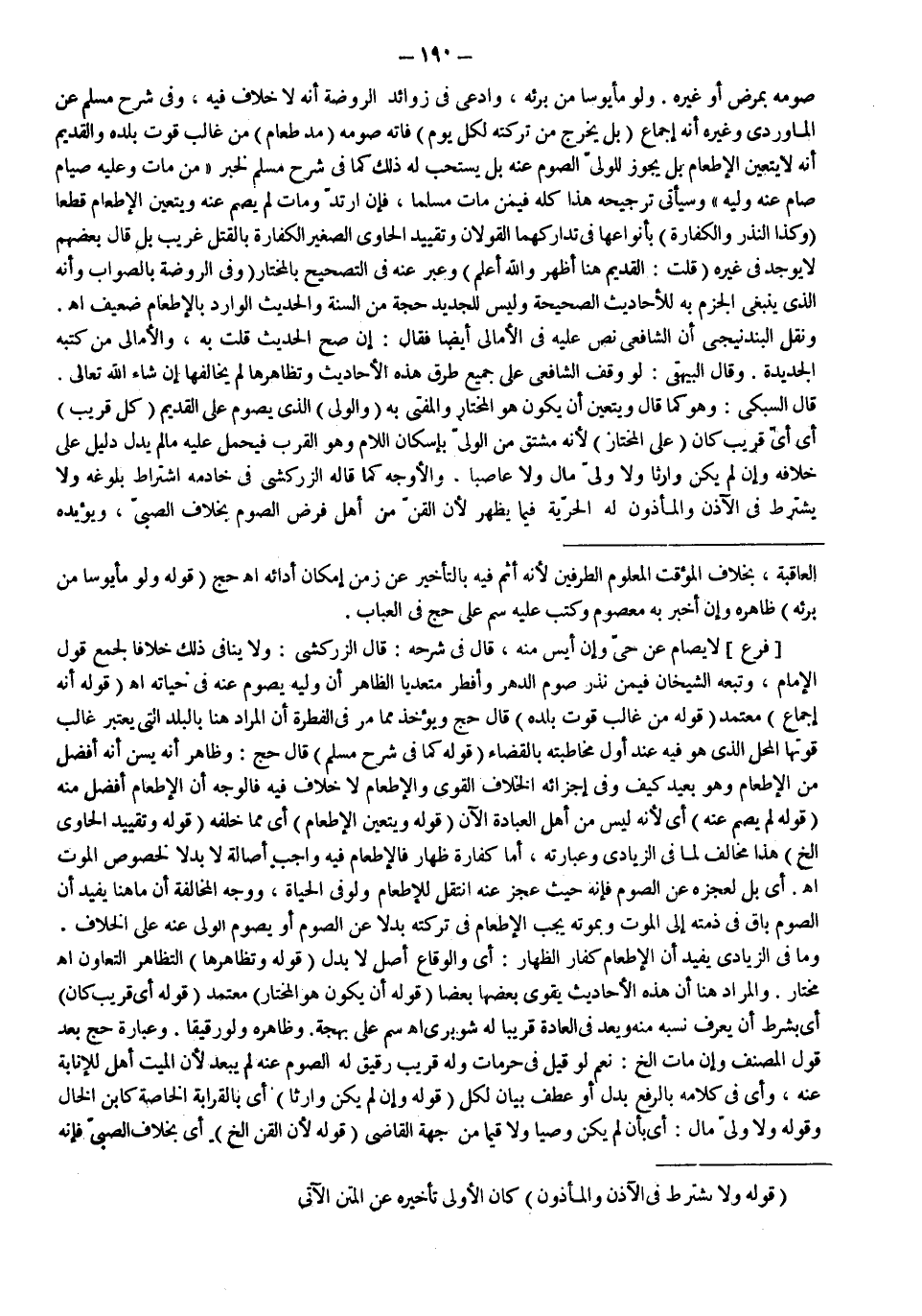 وَالْأَوْجَهُ كَمَا قَالَهُ الزَّرْكَشِيُّ فِي خَادِمِهِ اشْتِرَاطُ بُلُوغِهِ وَلَا يُشْتَرَطُ فِي الْآذِنِ وَالْمَأْذُونِ لَهُ الْحُرِّيَّةُ فِيمَا يَظْهَرُ لِأَنَّ الْقِنَّ مِنْ أَهْلِ فَرْضِ الصَّوْمِ بِخِلَافِ الصَّبِيِّ، وَيُؤَيِّدُهُ