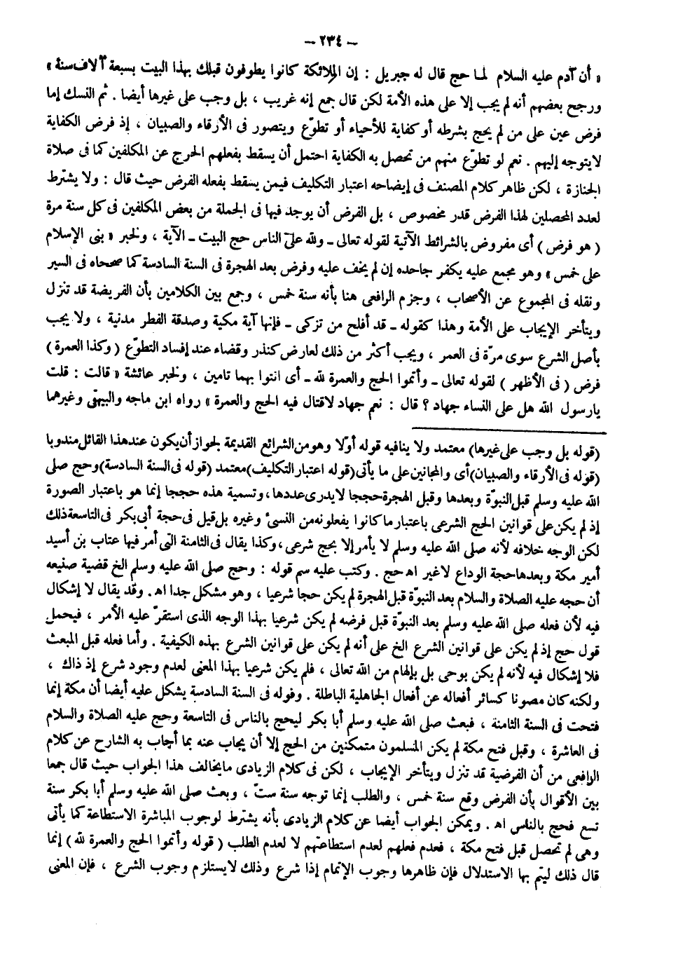 (قَوْلُهُ: فِي الْأَرِقَّاءِ وَالصَّبِيَّانِ) أَيْ وَالْمَجَانِينِ عَلَى مَا يَأْتِي (قَوْله اعْتِبَارُ التَّكْلِيفِ) مُعْتَمَدٌ (قَوْلُهُ: فِي السَّنَةِ السَّادِسَةِ) وَحَجّ - صَلَّى اللَّهُ عَلَيْهِ وَسَلَّمَ - قَبْلَ النُّبُوَّةِ وَبَعْدَهَا وَقَبْلَ الْهِجْرَةِ حُجَجًا لَا يُدْرَى عَدَدُهَا، وَتَسْمِيَةُ هَذِهِ حُجَجًا إنَّمَا هُوَ بِاعْتِبَارِ الصُّورَةِ إذْ لَمْ يَكُنْ عَلَى قَوَانِينِ الْحَجِّ الشَّرْعِيِّ بِاعْتِبَارِ مَا كَانُوا يَفْعَلُونَهُ مِنْ النَّسِيءِ وَغَيْرِهِ بَلْ قِيلَ فِي حَجَّةِ أَبِي بَكْرٍ فِي التَّاسِعَةِ ذَلِكَ لَكِنْ الْوَجْهُ خِلَافُهُ لِأَنَّهُ - صَلَّى اللَّهُ عَلَيْهِ وَسَلَّمَ - لَا يَأْمُرُ إلَّا بِحَجٍّ شَرْعِيٍّ، وَكَذَا يُقَال فِي الثَّامِنَةِ الَّتِي أَمَرَ فِيهَا عَتَّابَ بْنَ أُسَيْدَ أَمِيرَ مَكَّةَ وَبَعْدَهَا حَجَّةُ الْوَدَاعِ لَا غَيْرُ اهـ حَجّ.