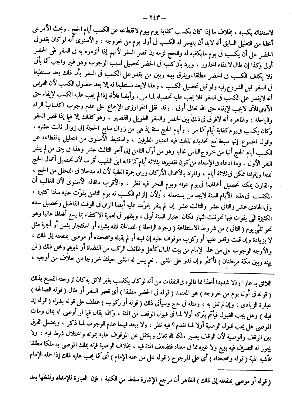 وَقَدْ نَقَلَ الْخُوَارِزْمِيُّ الْإِجْمَاعَ عَلَى عَدَمِ وُجُوبِ اكْتِسَابِ الزَّادِ وَالرَّاحِلَةِ: وَظَاهِرُهُ أَنَّهُ لَا فَرْقَ فِي ذَلِكَ بَيْنَ الْحَضَرِ وَالسَّفَرِ الطَّوِيلِ وَالْقَصِيرِ، وَهُوَ كَذَلِكَ إلَّا فِيمَا إذَا قَصُرَ السَّفَرُ وَكَانَ يَكْسِبُ فِي يَوْمٍ كِفَايَةَ أَيَّامٍ كَمَا مَرَّ، وَأَيَّامُ الْحَجِّ سِتَّةٌ إذْ هِيَ مِنْ زَوَالِ سَابِعِ الْحِجَّةِ إلَى زَوَالِ ثَالِثَ عَشَرِهِ، وَقَوْلُ الْمَجْمُوعِ إنَّهَا سَبْعَةٌ مَعَ تَحْدِيدِهِ بِذَلِكَ فِيهِ اعْتِبَارُ الطَّرَفَيْنِ، وَاسْتَنْبَطَ الْإِسْنَوِيُّ مِنْ التَّعْلِيلِ بِانْقِطَاعِهِ عَنْ الْكَسْبِ أَيَّامَ الْحَجِّ أَنَّهَا مِنْ خُرُوجِ النَّاسِ غَالِبًا وَهُوَ مِنْ أَوَّلِ الثَّامِنِ إلَى آخِرِ الثَّالِثَ عَشَرَ وَهَذَا فِي حَقِّ مَنْ لَمْ يَنْفِرْ النَّفْرَ الْأَوَّلَ، وَمَا ادَّعَاهُ فِي الْإِسْعَادِ مِنْ كَوْنِ تَقْدِيرِهَا بِثَلَاثَةِ أَيَّامٍ كَمَا قَالَهُ ابْنُ النَّقِيبِ أَقْرَبُ؛ لِأَنَّ تَحْصِيلَ أَعْمَالِ الْحَجِّ تَمَتُّعًا وَإِفْرَادًا مُمْكِنٌ فِي ثَلَاثَةِ أَيَّامٍ، وَالْمُرَادُ بِالْأَعْمَالِ الْأَرْكَانِ وَرَمْيِ جَمْرَةِ الْعَقَبَةِ؛ لِأَنَّ لَهُ مَدْخَلًا فِي التَّحَلُّلِ مِنْ الْحَجِّ، وَالْقَارِنُ يُمْكِنُهُ تَحْصِيلُ أَعْمَالِهِمَا فِي يَوْمِ عَرَفَةَ وَيَوْمِ النَّحْرِ فِيهِ نَظَرٌ، وَالْأَقْرَبُ مَا قَالَهُ الْإِسْنَوِيُّ؛ لِأَنَّ الْغَالِبَ أَنَّ الْمُكْتَسَبَ فِي هَذِهِ الْأَيَّامِ السِّتَّةِ لَا يَجِدُ مَنْ يَسْتَعْمِلُهُ، وَلِأَنَّ إلْزَامَ الْكَسْبِ لَهُ يَوْمَ الثَّامِنِ يُفَوِّتُ عَلَيْهِ سُنَنًا كَثِيرَةً، وَفِي الْحَادِيَ عَشَرَ وَالثَّانِيَ عَشَرَ وَالثَّالِثَ عَشَرَ إنْ لَمْ يَنْفِرْ يَفُوتُ عَلَيْهِ أَيْضًا الرَّمْيُ فِي الْوَقْتِ الْفَاضِلِ وَتَحْصِيلُ سُنَنِهِ الْكَثِيرَةِ الَّتِي يَفُوتُ فِيهَا نَحْوُ ثُلُثِ النَّهَارِ فَكَانَ اعْتِبَارُ السِّتَّةِ أَوْلَى، وَيَظْهَرُ فِي الْعُمْرَةِ الِاكْتِفَاءُ بِمَا يَسَعُ أَفْعَالُهَا غَالِبًا وَهُوَ نَحْوُ ثُلُثَيْ يَوْمٍ.