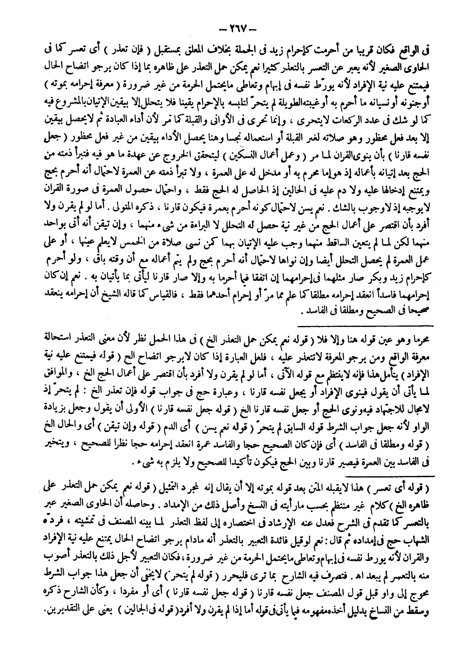 فَتَصَرَّفَ فِيهِ الشَّارِحُ بِمَا تَرَى فَلْيُحَرَّرْ (قَوْلُهُ: لَمْ يَتَحَرَّ) لَا يَخْفَى أَنَّ جَعْلَ هَذَا جَوَابَ الشَّرْطِ مُحْوِجٌ إلَى وَاوٍ قَبْلَ قَوْلِ الْمُصَنِّفِ جَعَلَ نَفْسَهُ قَارِنًا (قَوْلُهُ: جَعَلَ نَفْسَهُ قَارِنًا) أَيْ أَوْ مُفْرِدًا، وَكَأَنَّ الشَّارِحَ ذَكَرَهُ وَسَقَطَ مِنْ النُّسَّاخِ بِدَلِيلِ أَخْذِهِ مَفْهُومَهُ فِيمَا يَأْتِي فِي قَوْلِهِ أَمَّا إذَا لَمْ يَقْرِنْ وَلَا أَفْرَدَ (قَوْلُهُ: فِي الْحَالَيْنِ) يَعْنِي عَلَى التَّقْدِيرَيْنِ.