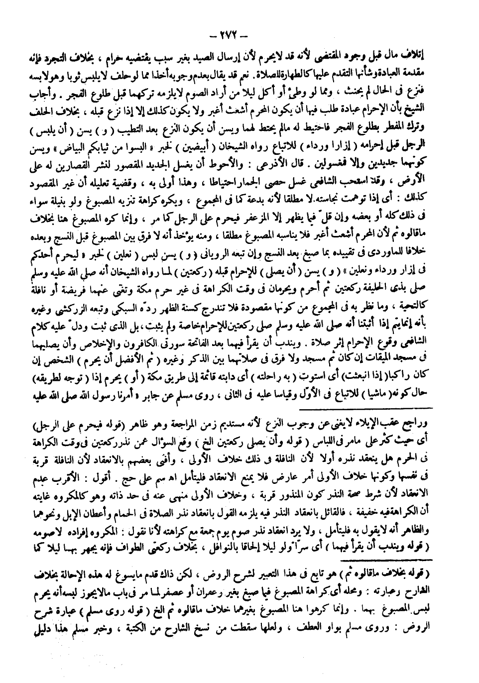 وَقَدْ اسْتَحَبَّ الشَّافِعِيُّ غَسْلَ حَصَى الْجِمَارِ احْتِيَاطًا، وَهَذَا أَوْلَى بِهِ، وَقَضِيَّةُ تَعْلِيلِهِ أَنَّ غَيْرَ الْمَقْصُودِ كَذَلِكَ: أَيْ إذَا تُوُهِّمَتْ نَجَاسَتُهُ لَا مُطْلَقًا لِأَنَّهُ بِدْعَةٌ كَمَا فِي الْمَجْمُوعِ، وَيُكْرَهُ كَرَاهَةَ تَنْزِيهٍ الْمَصْبُوغُ وَلَوْ بِنِيلَةٍ سَوَاءٌ فِي ذَلِكَ كُلِّهِ أَوْ بَعْضِهِ وَإِنْ قَلَّ فِيمَا يَظْهَرُ إلَّا الْمُزَعْفَرَ فَيَحْرُمُ عَلَى الرَّجُلِ كَمَا مَرَّ، وَإِنَّمَا كُرِهَ الْمَصْبُوغُ هُنَا بِخِلَافِ مَا قَالُوهُ ثَمَّ؛ لِأَنَّ الْمُحْرِمَ أَشْعَثَ أَغْبَرَ فَلَا يُنَاسِبُهُ الْمَصْبُوغُ مُطْلَقًا، وَمِنْهُ يُؤْخَذُ أَنَّهُ لَا فَرْقَ بَيْنَ الْمَصْبُوغِ قَبْلَ النَّسْجِ وَبَعْدَهُ خِلَافًا لِلْمَاوَرْدِيِّ فِي تَقْيِيدِهِ بِمَا صُبِغَ بَعْد النَّسْجِ وَإِنْ تَبِعَهُ الرُّويَانِيُّ.