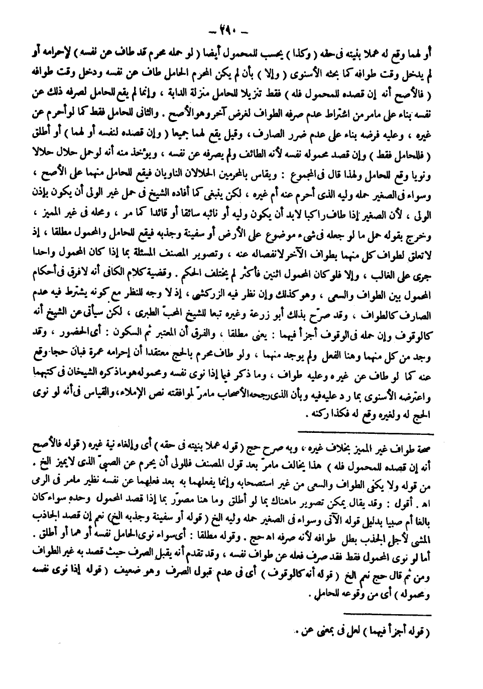 وَقَضِيَّةُ كَلَامِ الْكَافِي أَنَّهُ لَا فَرْقَ فِي أَحْكَامِ الْمَحْمُولِ بَيْنَ الطَّوَافِ وَالسَّعْيِ، وَهُوَ كَذَلِكَ وَإِنْ نَظَرَ فِيهِ الزَّرْكَشِيُّ، إذْ لَا وَجْهَ لِلنَّظَرِ مَعَ كَوْنِهِ يُشْتَرَطُ فِيهِ عَدَمُ الصَّارِفِ كَالطَّوَافِ، وَقَدْ صَرَّحَ بِذَلِكَ أَبُو زُرْعَةَ وَغَيْرُهُ تَبَعًا لِلشَّيْخِ الْمُحِبِّ الطَّبَرِيِّ، لَكِنْ سَيَأْتِي عَنْ الشَّيْخِ أَنَّهُ كَالْوُقُوفِ وَإِنْ حَمَلَهُ فِي الْوُقُوفِ أَجْزَأَ فِيهِمَا: يَعْنِي مُطْلَقًا، وَالْفَرْقُ أَنَّ الْمُعْتَبَرَ ثَمَّ السُّكُونُ: أَيْ الْحُضُورُ، وَقَدْ وُجِدَ مِنْ كُلٍّ مِنْهُمَا وَهُنَا الْفِعْلُ وَلَمْ يُوجَدْ مِنْهُمَا.
