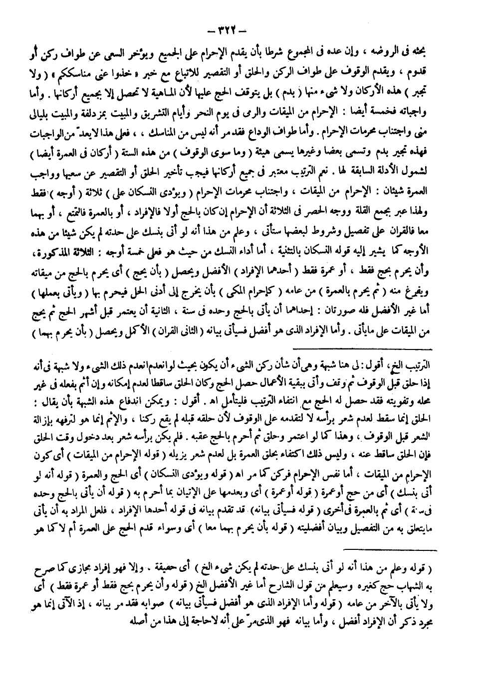 فَلَمْ يَكُنْ بِرَأْسِهِ شَعْرٌ بَعْدَ دُخُولِ وَقْتِ الْحَلْقِ فَإِنَّ الْحَلْقَ سَاقِطٌ عَنْهُ، وَلَيْسَ ذَلِكَ اكْتِفَاءً بِحَلْقِ الْعُمْرَةِ بَلْ لِعَدَمِ شَعْرٍ يُزِيلُهُ (قَوْلُهُ: الْإِحْرَامُ مِنْ الْمِيقَاتِ) أَيْ كَوْنُ الْإِحْرَامِ مِنْ الْمِيقَاتِ، أَمَّا نَفْسُ الْإِحْرَامِ فَرُكْنٌ كَمَا مَرَّ اهـ