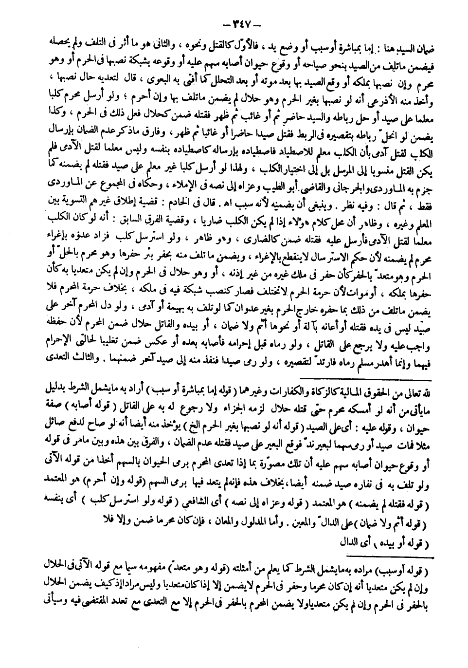ـــــــــــــــــــــــــــــQقَوْلُهُ: أَوْ سَبَبٍ) مُرَادُهُ بِهِ مَا يَشْمَلُ الشَّرْطَ كَمَا يُعْلَمُ مِنْ أَمْثِلَتِهِ (قَوْلُهُ: وَهُوَ مُتَعَدٍّ) مَفْهُومُهُ سِيَّمَا مَعَ قَوْلِهِ الْآتِي فِي الْحَلَالِ وَإِنْ لَمْ يَكُنْ مُتَعَدِّيًا أَنَّهُ إنْ كَانَ مُحْرِمًا وَحَفَرَ فِي الْحَرَمِ لَا يَضْمَنُ إلَّا إذَا كَانَ مُتَعَدِّيًا وَلَيْسَ مُرَادًا إذْ كَيْفَ يَضْمَنُ الْحَلَالُ بِالْحَفْرِ فِي الْحَرَمِ وَإِنْ لَمْ يَكُنْ مُتَعَدِّيًا وَلَا يَضْمَنُ الْمُحْرِمُ بِالْحَفْرِ فِي الْحَرَمِ إلَّا مَعَ التَّعَدِّي مَعَ تَعَدُّدِ الْمُقْتَضِي فِيهِ وَسَيَأْتِي