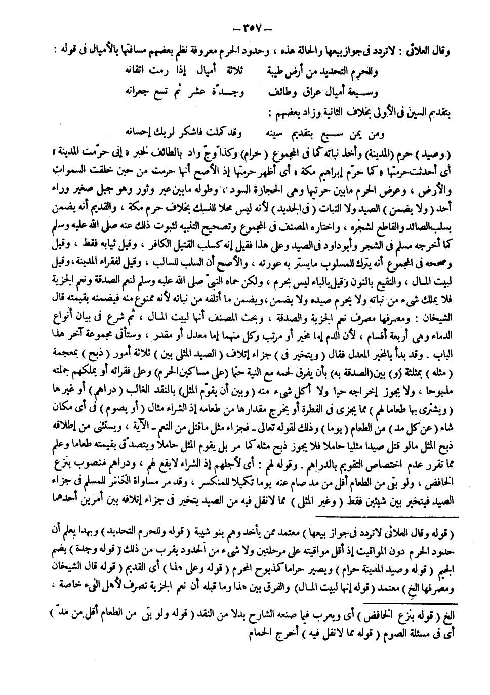 وَقَالَ الْعَلَائِيُّ: لَا تَرَدُّدَ فِي جَوَازِ بَيْعِهَا وَالْحَالَةُ هَذِهِ، وَحُدُودُ الْحَرَمِ مَعْرُوفَةٌ نَظَمَ بَعْضُهُمْ مَسَافَتَهَا بِالْأَمْيَالِ فِي قَوْلِهِ: