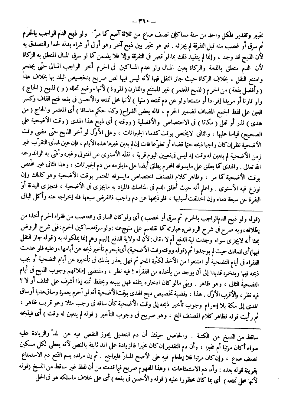 وَاعْلَمْ أَنَّهُ حَيْثُ أَطْلَقَ الدَّمَ فِي الْمَنَاسِكِ فَالْمُرَادُ بِهِ مَا يُجْزِي فِي الْأُضْحِيَّةِ، فَتُجْزِي الْبَدَنَةُ أَوْ الْبَقَرَةُ عَنْ سَبْعَةِ دِمَاءٍ وَإِنْ اخْتَلَفَتْ أَسْبَابُهَا، فَلَوْ ذَبَحَهَا عَنْ دَمٍ وَاجِبٍ فَالْفَرْضُ سُبُعُهَا فَلَهُ إخْرَاجُهُ عَنْهُ وَأَكْلُ الْبَاقِي