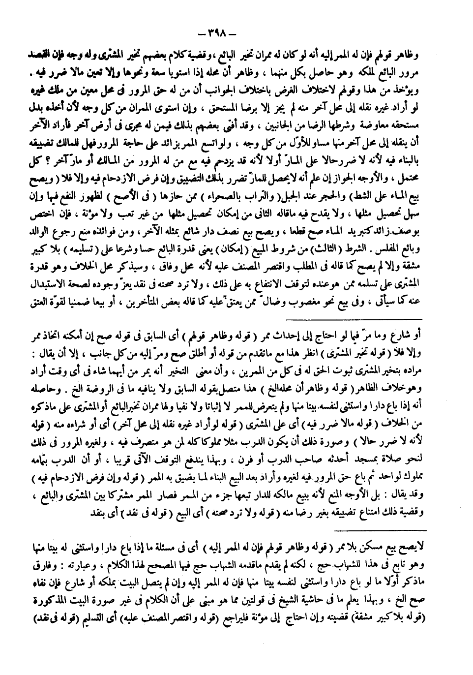 ـــــــــــــــــــــــــــــSأَوْ شَارِعٌ وَمَا مَرَّ فِيمَا لَوْ احْتَاجَ إلَى إحْدَاثِ مَمَرٍّ (قَوْلُهُ: وَظَاهِرُ قَوْلِهِمْ) أَيْ السَّابِقِ فِي قَوْلِهِ صَحَّ إنْ أَمْكَنَهُ اتِّخَاذُ مَمَرٍّ وَإِلَّا فَلَا (قَوْلُهُ: تَخَيَّرَ الْمُشْتَرِي) اُنْظُرْ هَذَا مَعَ مَا تَقَدَّمَ مِنْ قَوْلِهِ أَوْ أَطْلَقَ صَحَّ وَمَرَّ إلَيْهِ مِنْ كُلِّ جَانِبٍ، إلَّا أَنْ يُقَالَ: مُرَادُهُ بِتَخَيُّرِ الْمُشْتَرِي ثُبُوتَ الْحَقِّ لَهُ فِي كُلٍّ مِنْ الْمَمَرَّيْنِ، وَأَنَّ مَعْنَى التَّخَيُّرِ أَنَّهُ يَمُرُّ مِنْ أَيِّهِمَا شَاءَ فِي أَيِّ وَقْتٍ أَرَادَ وَهُوَ خِلَافُ الظَّاهِرِ (قَوْلُهُ: وَظَاهِرٌ أَنَّ مَحَلَّهُ إلَخْ) هَذَا مُتَّصِلٌ بِقَوْلِهِ السَّابِقِ وَلَا يُنَافِيهِ مَا فِي الرَّوْضَةِ إلَخْ.