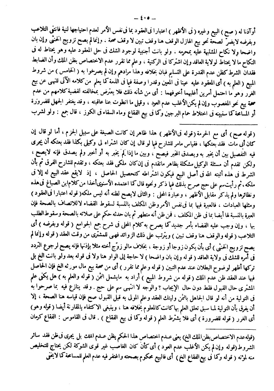 أَوْ أَذِنَا لَهُ (صَحَّ) الْبَيْعُ وَغَيْرُهُ (فِي الْأَظْهَرِ) اعْتِبَارًا فِي الْعُقُودِ بِمَا فِي نَفْسِ الْأَمْرِ لِعَدَمِ احْتِيَاجِهَا لِنِيَّةٍ فَانْتِفِي، التَّلَاعُبُ وَبِفَرْضِهِ لَا يَضُرُّ لِصِحَّةِ نَحْوِ بَيْعِ الْهَازِلِ، الْوَقْفُ هُنَا وَقْفُ تَبَيُّنٍ لَا وَقْفُ صِحَّةٍ، وَإِنَّمَا لَمْ يَصِحَّ تَزْوِيجُ الْخُنْثَى وَإِنْ بَانَ وَاضِحًا وَلَا نِكَاحُ الْمُشْتَبِهَةِ عَلَيْهِ بِمَحْرَمِهِ، وَلَوْ بَانَتْ أَجْنَبِيَّةً لِوُجُودِ الشَّكِّ فِي حِلِّ الْمَعْقُودِ عَلَيْهِ وَهُوَ يُحْتَاطُ لَهُ فِي النِّكَاحِ مَا لَا يُحْتَاطُ لِوِلَايَةِ الْعَاقِدِ وَإِنْ اشْتَرَكَا فِي الرُّكْنِيَّةِ، وَعُلِمَ مِمَّا تَقَرَّرَ عَدَمُ الِاخْتِصَاصِ بِظَنِّ الْمِلْكِ، وَأَنَّ الضَّابِطَ فِقْدَانُ الشَّرْطِ كَظَنِّ عَدَمِ الْقُدْرَةِ عَلَى التَّسْلِيمِ فَبَانَ بِخِلَافِهِ وَهَذَا مُرَادُهُمْ وَإِنْ لَمْ يُصَرِّحُوا بِهِ.