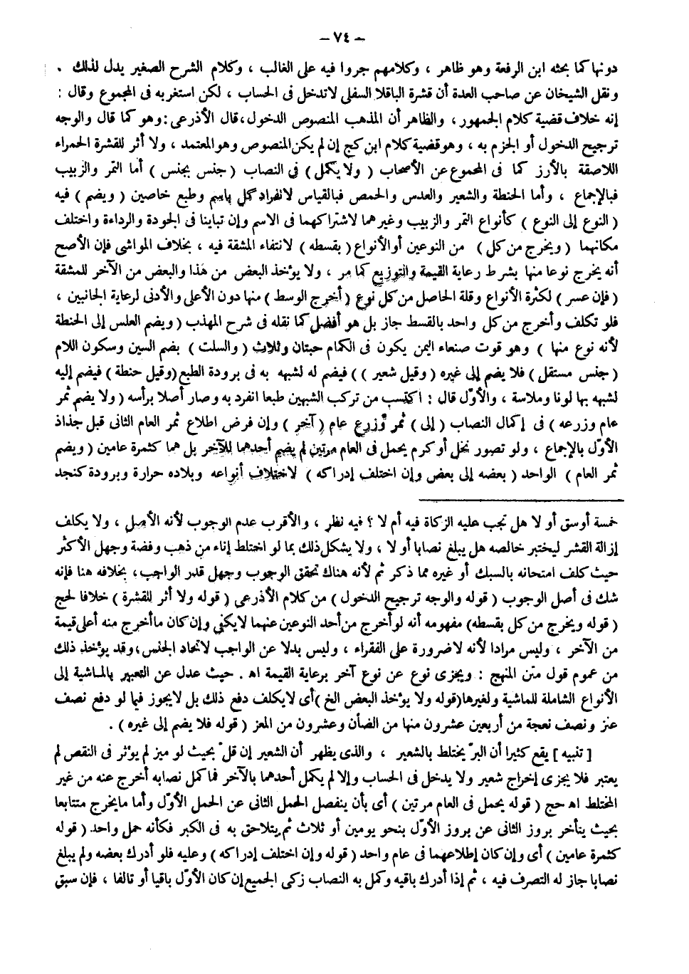 دُونَهَا كَمَا بَحَثَهُ ابْنُ الرِّفْعَةِ وَهُوَ ظَاهِرٌ، وَكَلَامُهُمْ جَرَوْا فِيهِ عَلَى الْغَالِبِ، وَكَلَامُ الشَّرْحِ الصَّغِيرِ يَدُلُّ لِذَلِكَ، وَنَقَلَ الشَّيْخَانِ عَنْ صَاحِبِ الْعُدَّةِ أَنَّ قِشْرَةَ الْبَاقِلَّا السُّفْلَى لَا تَدْخُلُ فِي الْحِسَابِ، لَكِنْ اسْتَغْرَبَهُ فِي الْمَجْمُوعِ وَقَالَ: إنَّهُ خِلَافُ قَضِيَّةِ كَلَامِ الْجُمْهُورِ، وَالظَّاهِرُ أَنَّ الْمَذْهَبَ الْمَنْصُوصَ الدُّخُولُ، قَالَ الْأَذْرَعِيُّ: وَهُوَ كَمَا قَالَ وَالْوَجْهُ تَرْجِيحُ الدُّخُولِ أَوْ الْجَزْمُ بِهِ، وَهُوَ قَضِيَّةُ كَلَامِ ابْنِ كَجٍّ إنْ لَمْ يَكُنْ الْمَنْصُوصُ وَهُوَ الْمُعْتَمَدُ، وَلَا أَثَرَ لِلْقِشْرَةِ الْحَمْرَاءِ اللَّاصِقَةِ بِالْأَرُزِّ كَمَا فِي الْمَجْمُوعِ عَنْ الْأَصْحَابِ