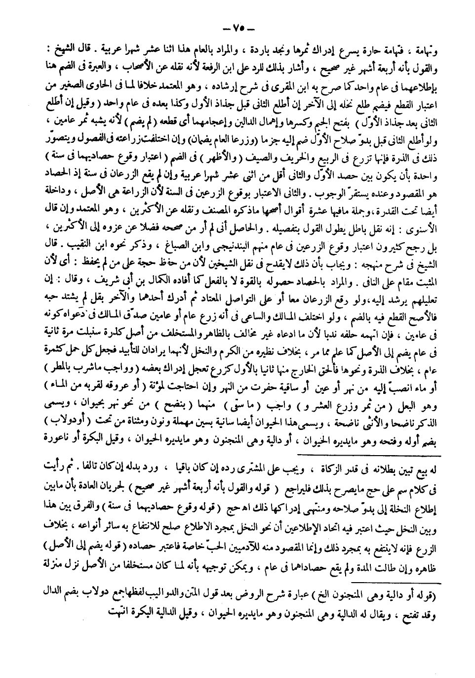 وَتِهَامَةَ، فَتِهَامَةُ حَارَّةٌ يُسْرِعُ إدْرَاكُ ثَمَرِهَا وَنَجْدٌ بَارِدَةٌ، وَالْمُرَادُ بِالْعَامِ هَذَا اثْنَا عَشَرَ شَهْرًا عَرَبِيَّةً.