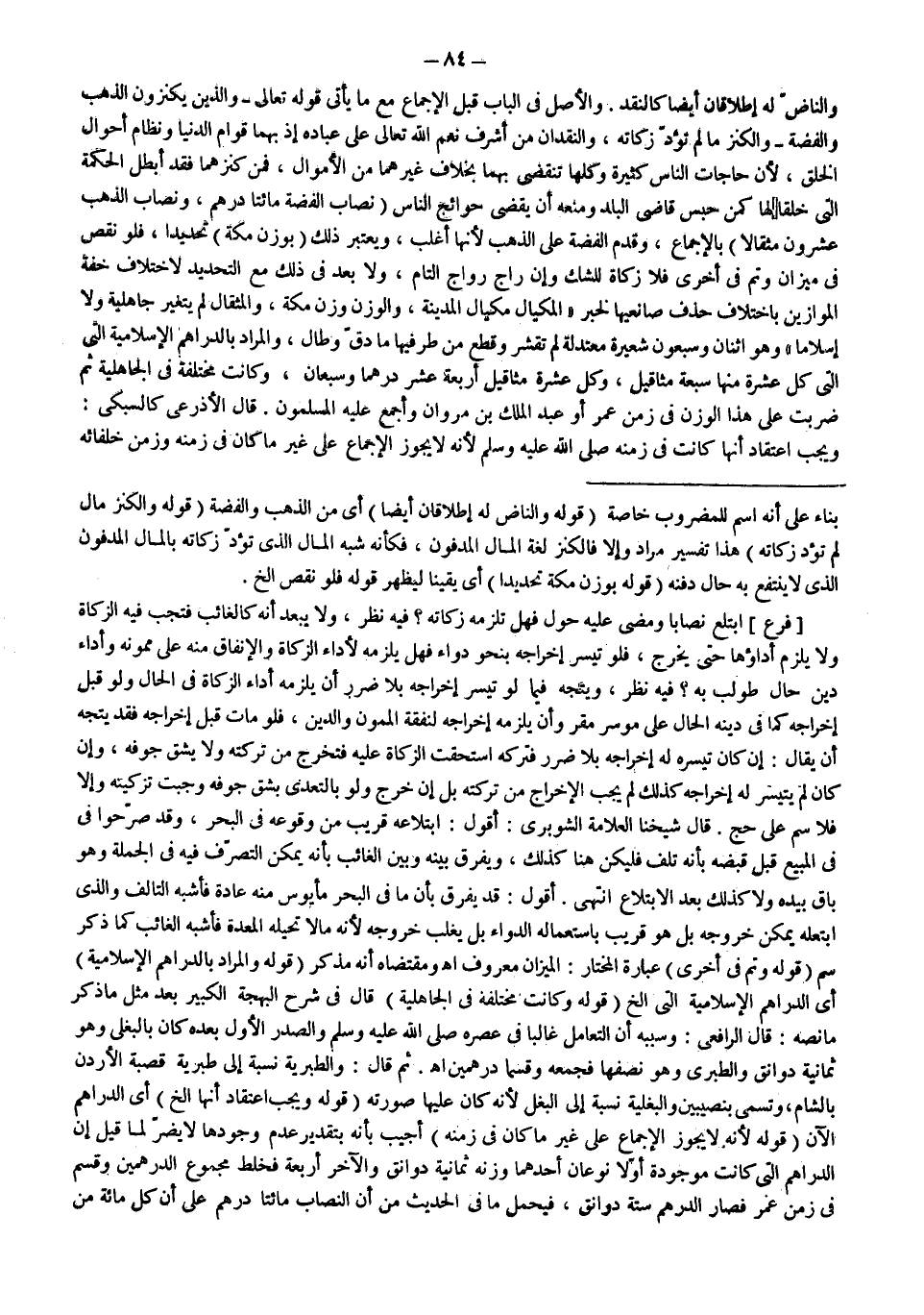ثُمَّ قَالَ: وَالطَّبَرِيَّةُ نِسْبَةٌ إلَى طَبَرِيَّةَ قَصَبَةِ الْأُرْدُنِّ بِالشَّامِ، وَتُسَمَّى بِنَصِيبَيْنِ، وَالْبَغْلِيَّةُ نِسْبَةً إلَى الْبَغْلِ لِأَنَّهُ كَانَ عَلَيْهَا صُورَتُهُ (قَوْلُهُ: وَيَجِبُ اعْتِقَادُ أَنَّهَا إلَخْ) أَيْ الدَّرَاهِمَ الْآنَ (قَوْلُهُ: لِأَنَّهُ لَا يَجُوزُ الْإِجْمَاعُ عَلَى غَيْرِ مَا كَانَ فِي زَمَنِهِ) أُجِيبَ بِأَنَّهُ بِتَقْدِيرِ عَدَمِ وُجُودِهَا لَا يَضُرُّ لِمَا قِيلَ إنَّ الدَّرَاهِمَ الَّتِي كَانَتْ مَوْجُودَةً أَوَّلًا نَوْعَانِ أَحَدُهُمَا وَزْنُهُ ثَمَانِيَةُ دَوَانِقَ، وَالْآخَرُ أَرْبَعَةٌ فَخُلِطَ مَجْمُوعُ الدِّرْهَمَيْنِ وَقُسِمَ فِي زَمَنِ عُمَرَ فَصَارَ الدِّرْهَمُ سِتَّةَ دَوَانِقَ، فَيُحْمَلُ مَا فِي الْحَدِيثِ مِنْ أَنَّ النِّصَابَ مِائَتَا دِرْهَمٍ عَلَى أَنَّ كُلَّ مِائَةٍ مِنْ