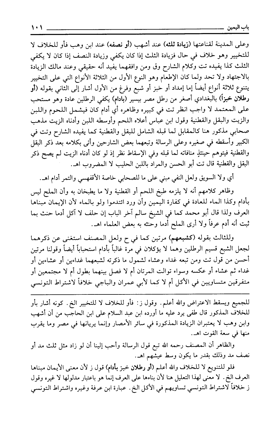 فلو للتنويع لا للخلاف والله أعلم (أو رطلان خبز بأدام) قول ز لأن معنى الأيمان مبناها العرف الخ. لا معنى لهذا التعليل هنا لأن بناءها على العرف إنما هو باعتبار مدلولها لا غيره وقول ز خلافًا لاشتراط التونسي تساويهم في الأكل الخ. عبارة ابن عرفة وغيره واشتراط التونسي
