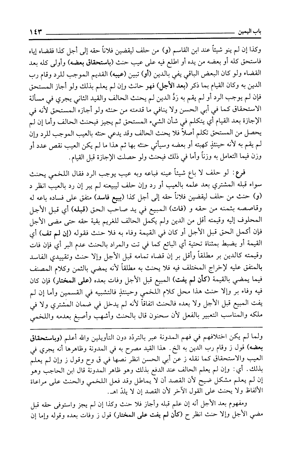 ولما لم يكن اختلافهم في فهم المدونة عبر بالتردّد دون التأويلين والله أعلم (وباستحقاق بعضه) قول ز وقام رب الدين به الخ. هذا القيد مصرح به في المدونة وظاهرها أنه يجري في العيب والاستحقاق كما نقله ز عن أبي الحسن انظر نصها في ق وح وقول ز وإن لم يعلم بذلك. أي: وإن لم يعلم الحالف عند الدفع بذلك وهو ظاهر المدونة قال ابن الحاجب وهو إن لم يعلم مشكل ضيح لأن القصد أن لا يماطل وقد فعل اللخمي والحنث على مراعاة الألفاظ ولا يحنث على القول الآخر لأن القصد إن لا يلدّ اهـ.