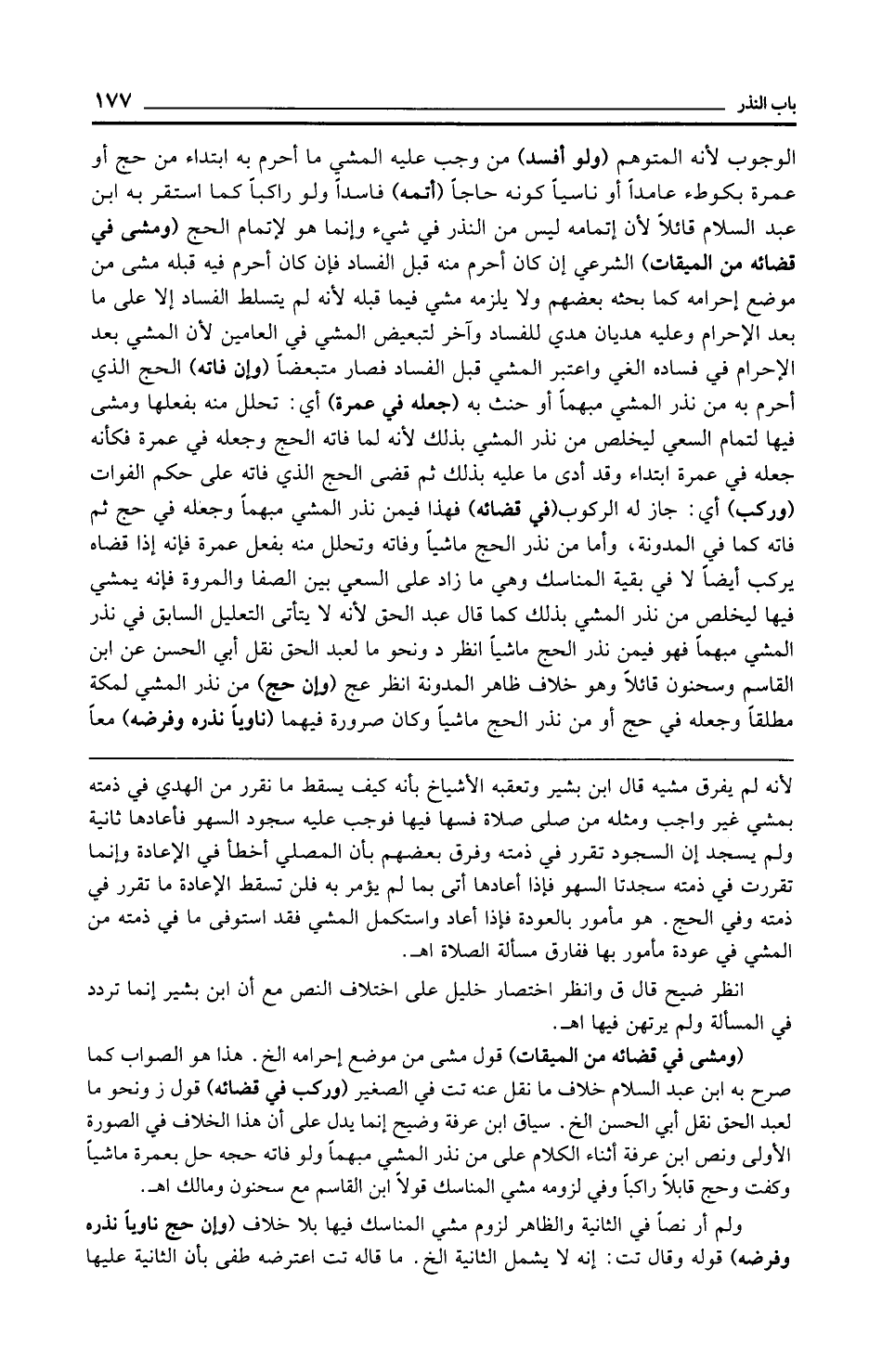 ولم أر نصًّا في الثانية والظاهر لزوم مشي المناسك فيها بلا خلاف (وإن حج ناويًا نذره وفرفه) قوله وقال تت: إنه لا يشمل الثانية الخ. ما قاله تت اعترضه طفى بأن الثانية عليها