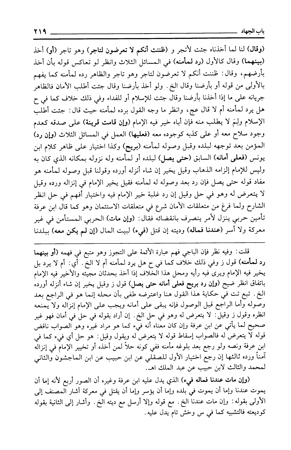 قلت: وفيه نظر فإن الباجي فهم عبارة الأئمة على التجوز وهو متبع في فهمه (أو بينهما رد لمأمنه) قول ز وفي ذلك خلاف كما في ح هل يرد لمأمنه أم لا الخ. أي: أم لا يرد بل يخير فيه الإِمام ويرى فيه رأيه ومحل هذا الخلاف إذا أخذ بحدثان مجيئه والأخير فيه الإِمام باتفاق انظر ضيح (وإن رد بريح فعلى أمانه حتى يصل) قول ز وقيل يخير إن شاء أنزله أورده الخ. تبع تت في حكاية هذا القول هنا واعترضه طفى بأن محله إنما هو في الراجع بعد وصوله وأما الراجع قبل الوصول فإنه يبقى على أمانه ويجب على الإِمام إنزاله ولا يمنعه انظره وقول ز وقيل: لا يتعرض له وهو في حل الخ. إن أراد بقوله في حل في أمان فهو غير صحيح لما يأتي عن ابن عرفة وإن كان معناه أنه فيء كما هو مراد غيره وهو الصواب ناقض قوله لا يتعرض له فالصواب إسقاط قوله لا يتعرض له ويقول وقيل: هو حل أي فيء كما في ابن عرفة ونصه ولو رجع بعد بلوغه مأمنه ففي كونه حلًا لمن أخذه أو تخيير الإِمام في إنزاله آمنًا ورده ثالثها إن رجع اختيار الأول للصقلي عن ابن حبيب عن ابن الماجشون والثاني لمحمد والثالث لابن حبيب عن عبد الملك اهـ.