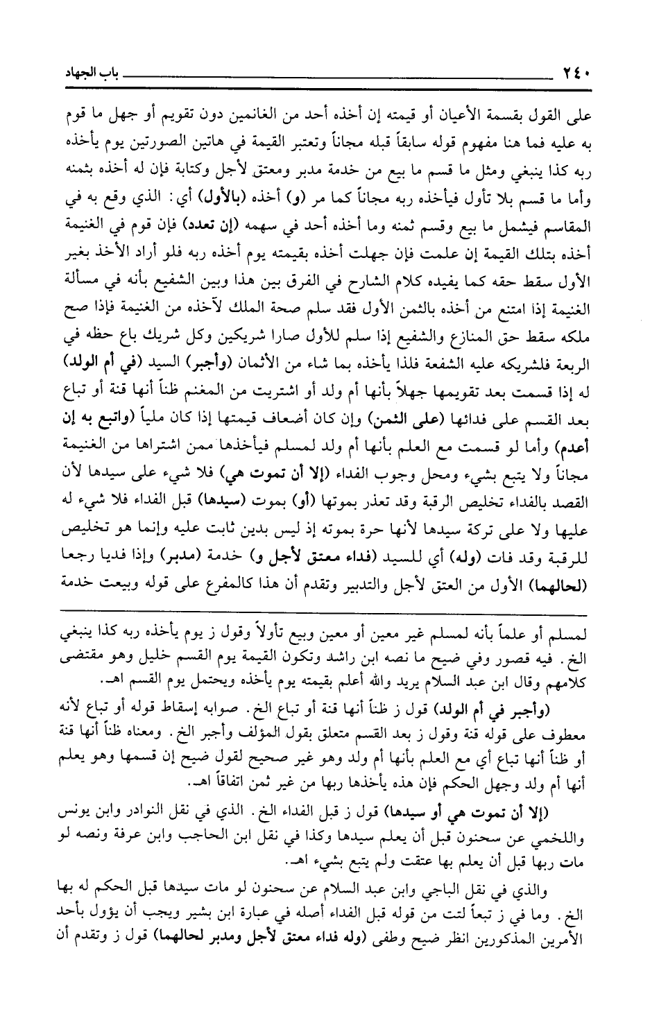 لمسلم أو علمًا بأنه لمسلم غير معين أو معين وبيع تأولًا وقول ز يوم يأخذه ربه كذا ينبغي الخ. فيه قصور وفي ضيح ما نصه ابن راشد وتكون القيمة يوم القسم خليل وهو مقتضى كلامهم وقال ابن عبد السلام يريد والله أعلم بقيمته يوم يأخذه ويحتمل يوم القسم اهـ.