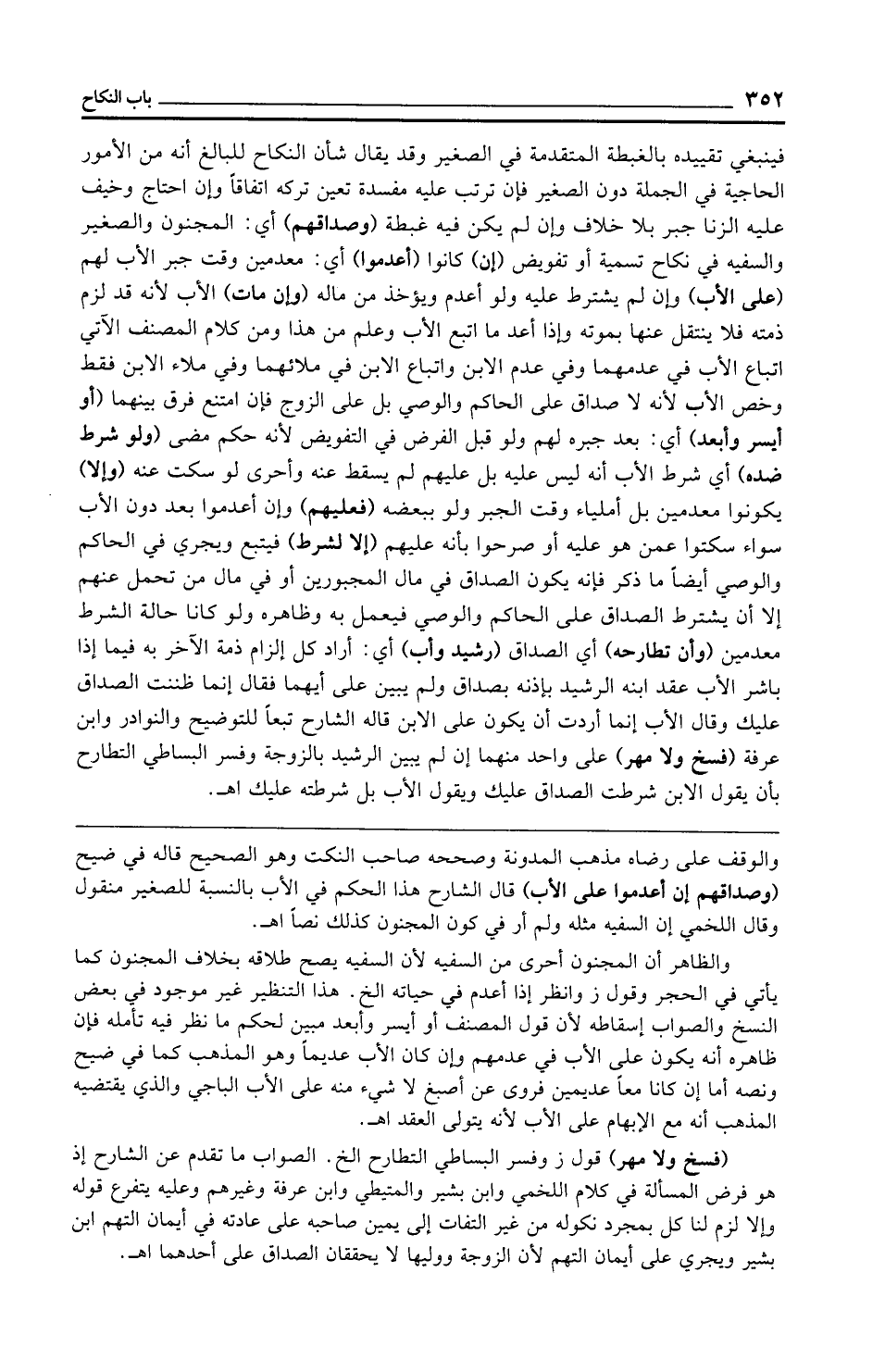 والوقف على رضاه مذهب المدونة وصححه صاحب النكت وهو الصحيح قاله في ضيح (وصداقهم إن أعدموا على الأب) قال الشارح هذا الحكم في الأب بالنسبة للصغير منقول وقال اللخمي إن السفيه مثله ولم أر في كون المجنون كذلك نصًّا اهـ.