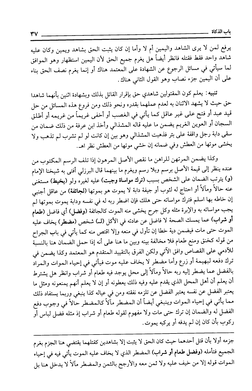 جزمه أولًا بأن قتل أحدهما حيث كان الحق لا يثبت إلا بشاهدين كقتلهما يقتضي هنا الجزم بغرم الجميع فتأمله (وفضل طعام أو شراب) المضطر الذي لا يخاف عليه الموت يأتي فيه في إحياء الموات قوله إلا من خيف عليه ولا ثمن معه والأرجح بالثمن والمضطر مآلًا لا يدخل هنا بل