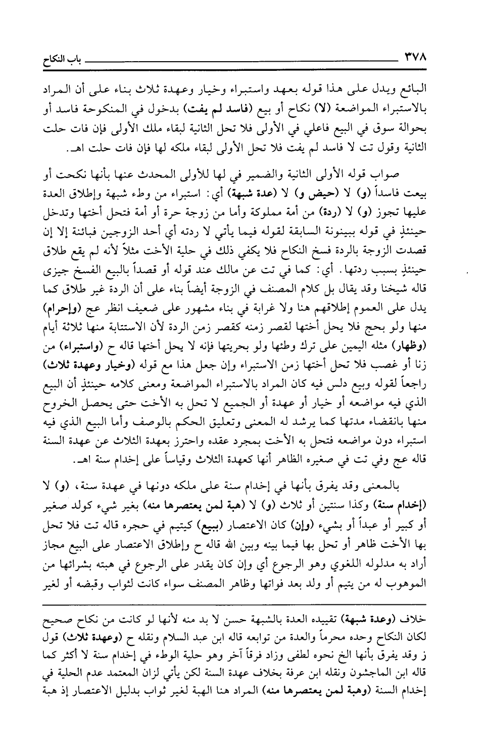 خلاف (وعدة شبهة) تقييده العدة بالشبهة حسن لا بد منه لأنها لو كانت من نكاح صحيح لكان النكاح وحده محرمًا والعدة من توابعه قاله ابن عبد السلام ونقله ح (وعهدة ثلاث) قول ز وقد يفرق بأنها الخ نحوه لطفى وزاد فرقًا آخر وهو حلية الوطء في إخدام سنة لا أكثر كما قاله ابن الماجشون ونقله ابن عرفة بخلاف عهدة السنة لكن يأتي لزان المعتمد عدم الحلية في إخدام السنة (وهبة لمن يعتصرها منه) المراد هنا الهبة لغير ثواب بدليل الاعتصار إذ هبة