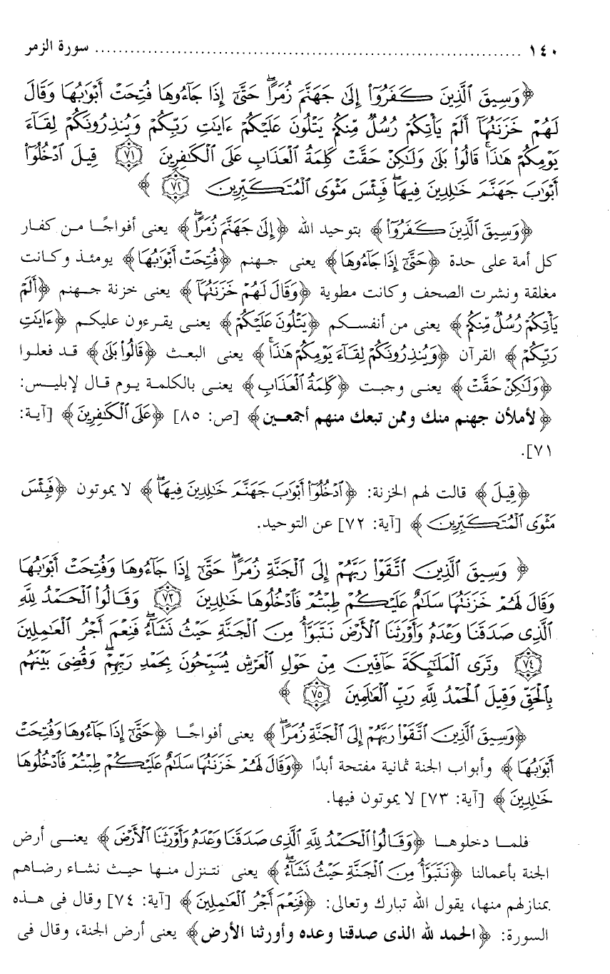تفسر سورة الزمر من الآية ( 71 ) إلى الآية ( 72 ) .