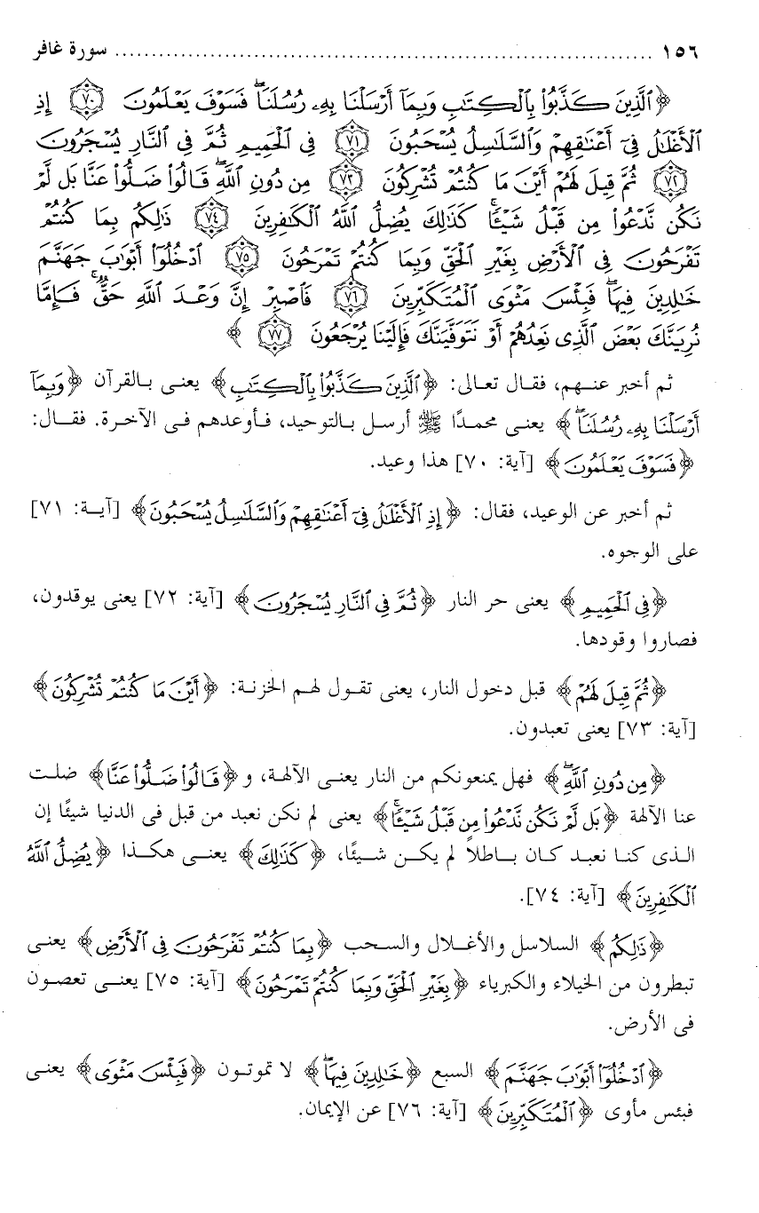 تفسير سورة غافر من الآية ( 70 ) إلى الآية ( 77 ) .
