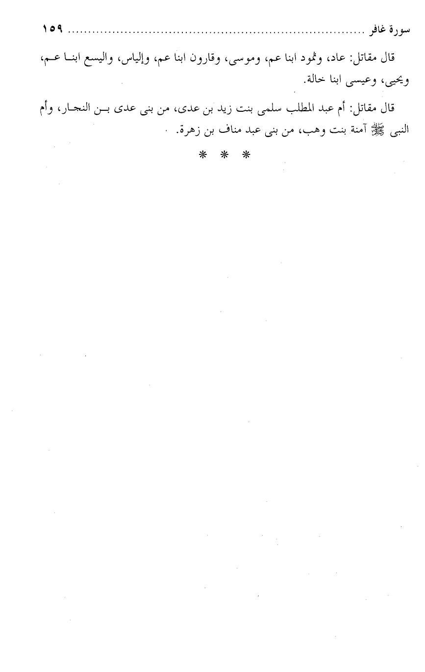 عاد ، وثمود ابنا عم ، وموسى ، وقارون ابنا عم ، وإلياس ، واليسع ابنا عم ،