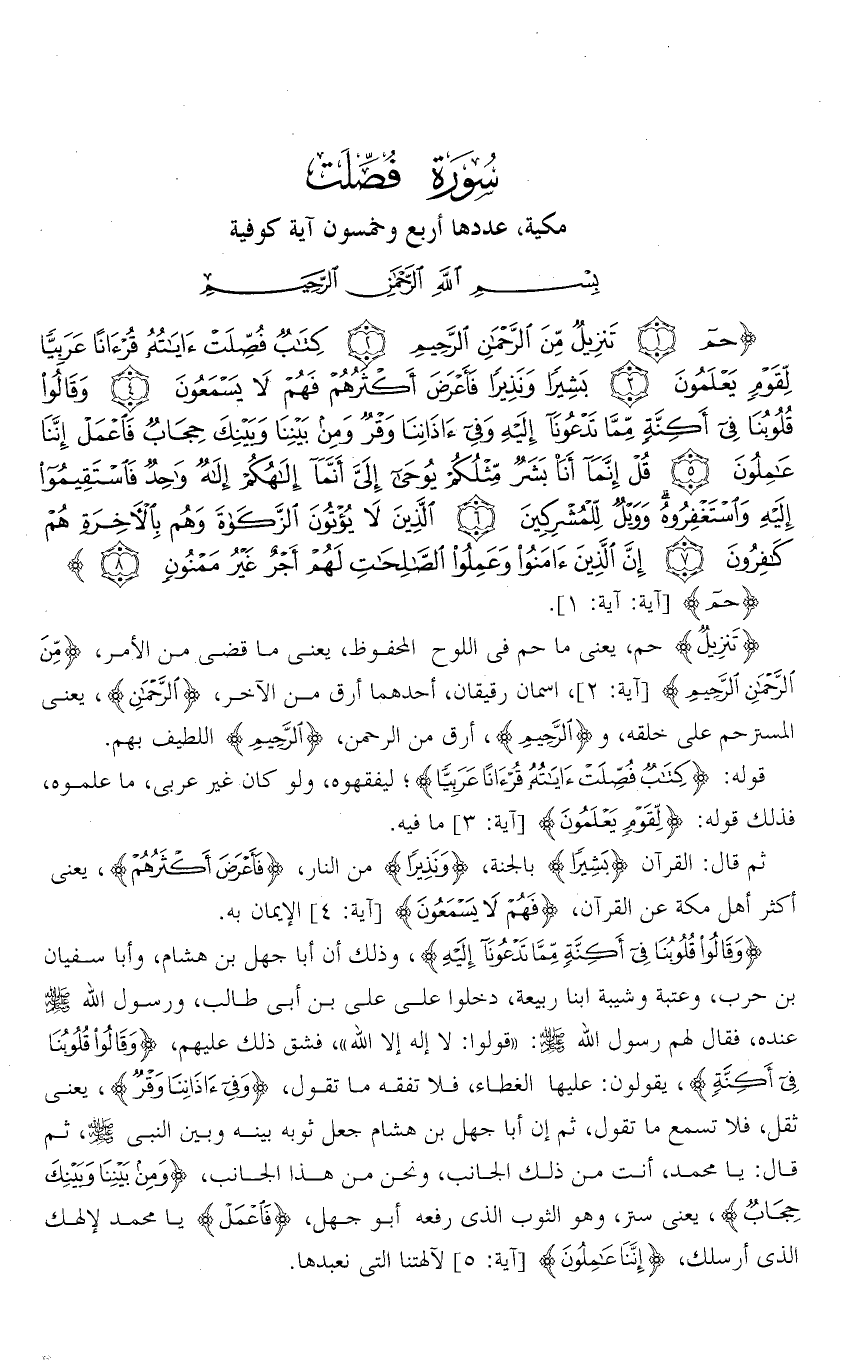 تفسير سورة فصلت من الآية ( 1 ) إلى الآية ( 8 ) .