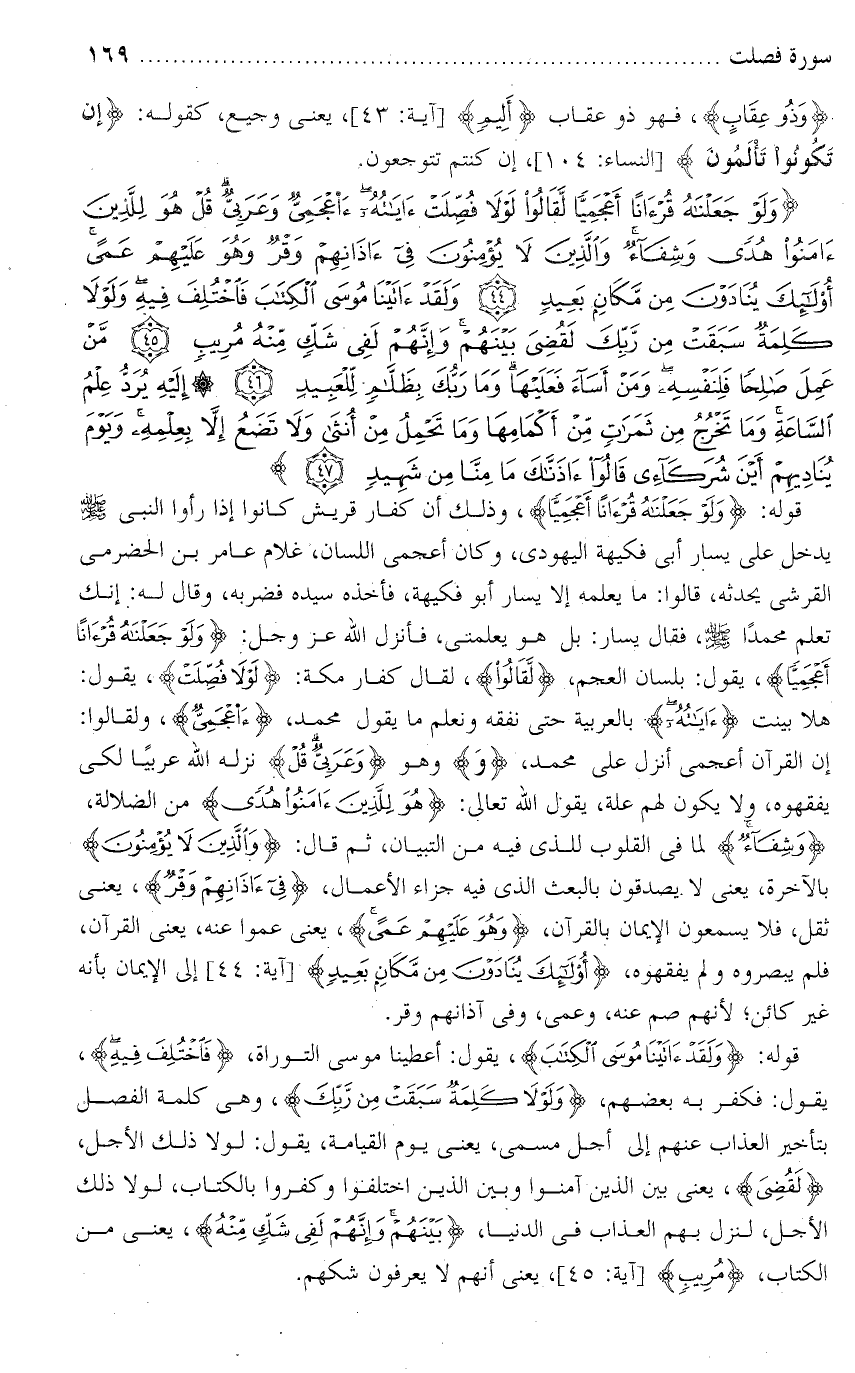 تفسير سورة فصلت من الآية ( 44 ) إلى الآية ( 47 ) .