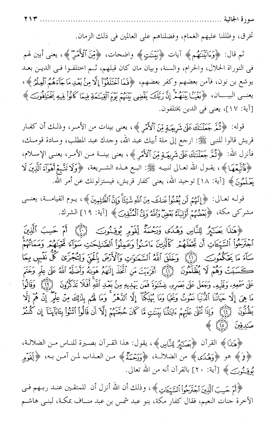 تفسير سورة الجاثية من الآية ( 20 ) إلى الآية ( 25 ) .