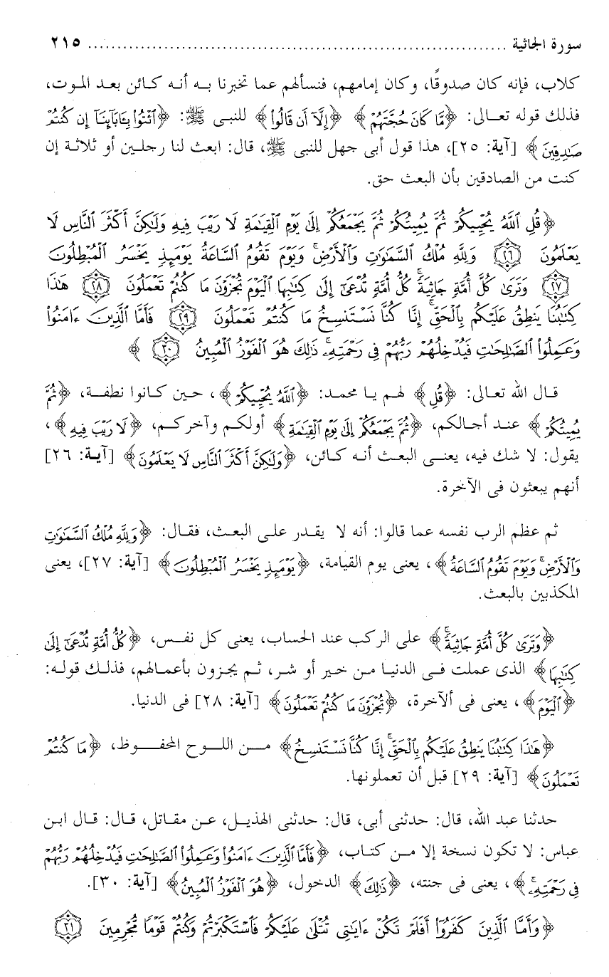 تفسير سورة الجاثية من الآية ( 21 ) إلى الآية ( 25 ) .