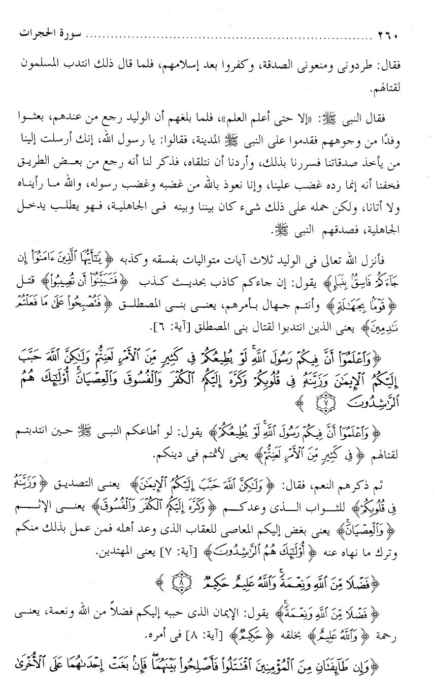 تفسير سورة الحجرات من الآية ( 8 ) فقط .