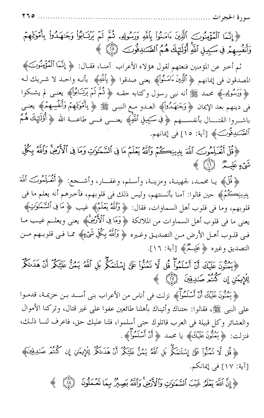 تفسير سورة الحجرات من الآية ( 15 ) فقط .