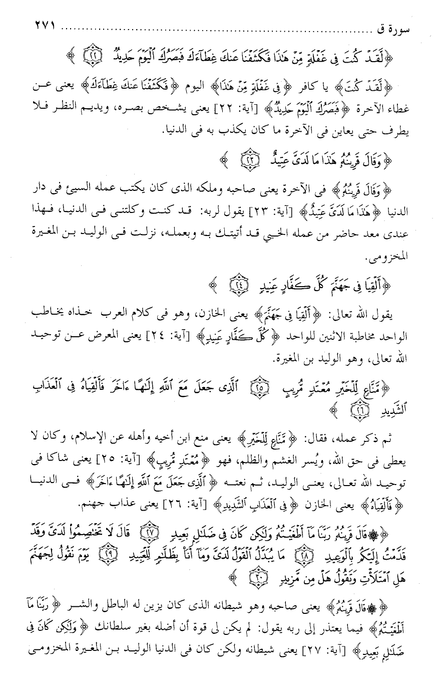 تفسير سورة ق من الآية ( 23 ) فقط .