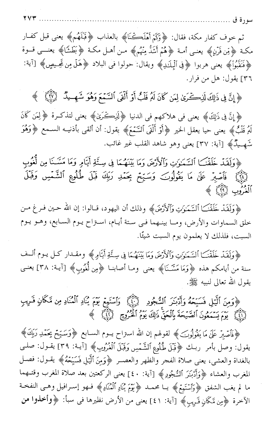 ق : ( 38 ) ولقد خلقنا السماوات . . . . .